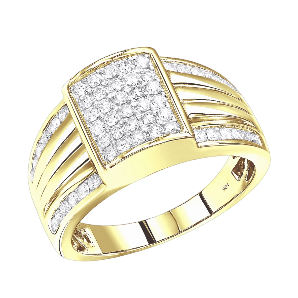 Affordable Men’s Diamond Rings! This Luxurman 10K Gold Men’s Diamond Ring makes a perfect pinky ring and also can be worn as a unique men’s wedding band, the ring weighs approximately 8 grams and showcases a 1 carat of masterfully pave set sparkling round cut diamonds. This classy diamond ring for men features a masculine design and a highly polished gold finish, and is available in 10K white, yellow and rose gold.