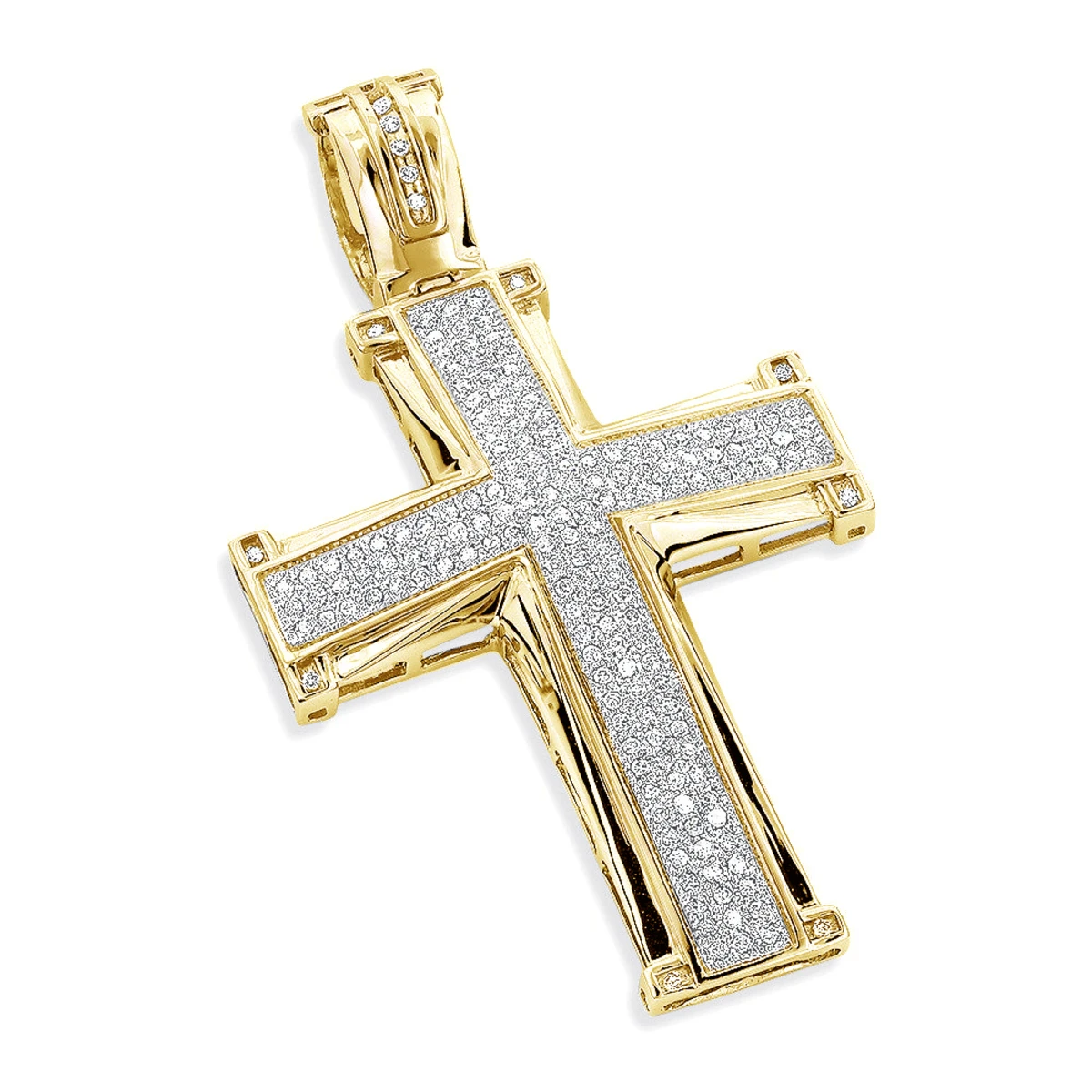 This stunning 10K Gold Round Diamond Cross Pendant is simple and elegant, but flashy at the same time. This round cut diamond cross features a slender design with 1 full carat of sparkling round diamonds, each expertly pave set in a highly polished gold frame. Featuring a classic design and a fine gallery back, this designer diamond cross pendant is available in 10K or 14k white, yellow and rose gold. You also can personalize this piece or check we’ve already made and create your own design.
