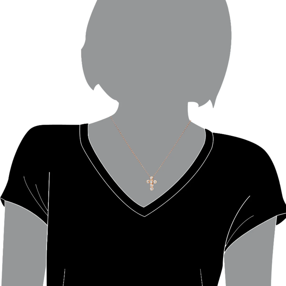14K Rose Gold Round Diamond Cross Necklace 0.60ct By Luxurman