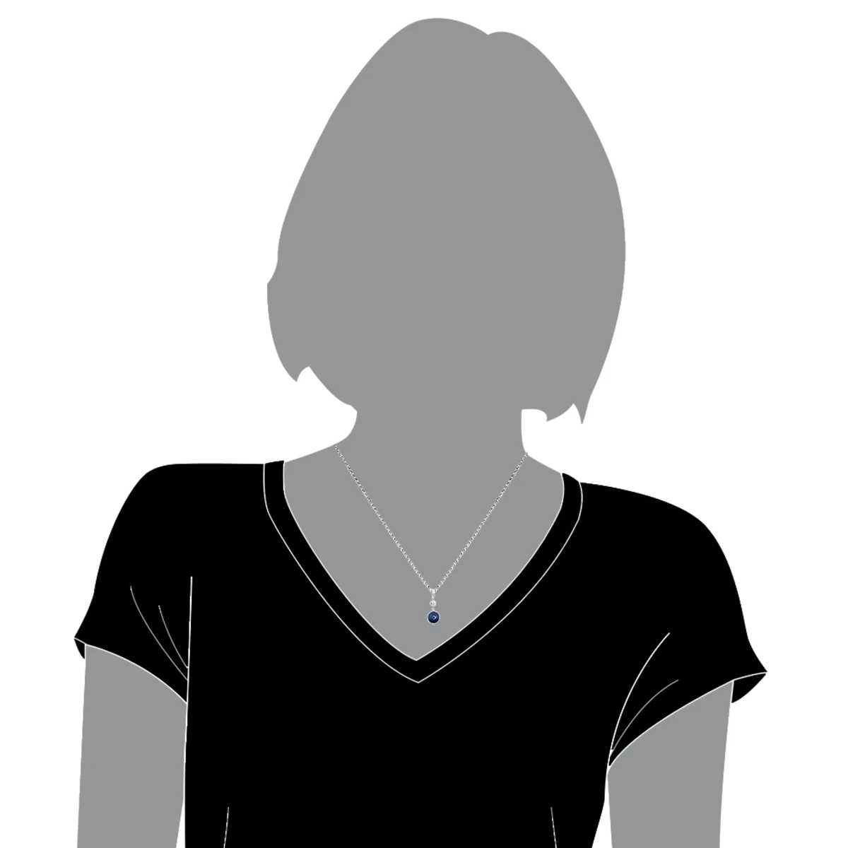 14K White Gold 0.10ct Diamond Blue Evil Eye Pendant 3/8in (10mm)