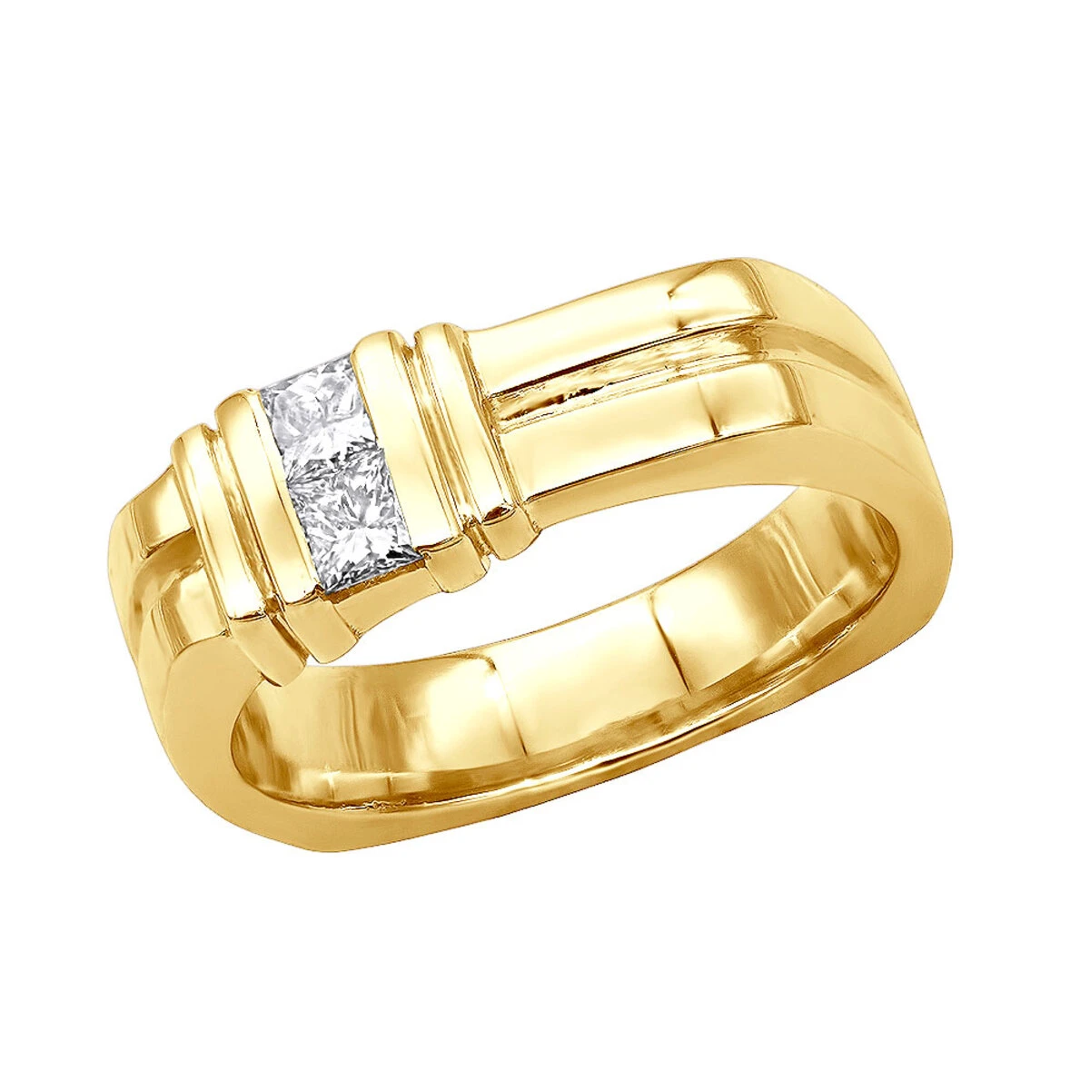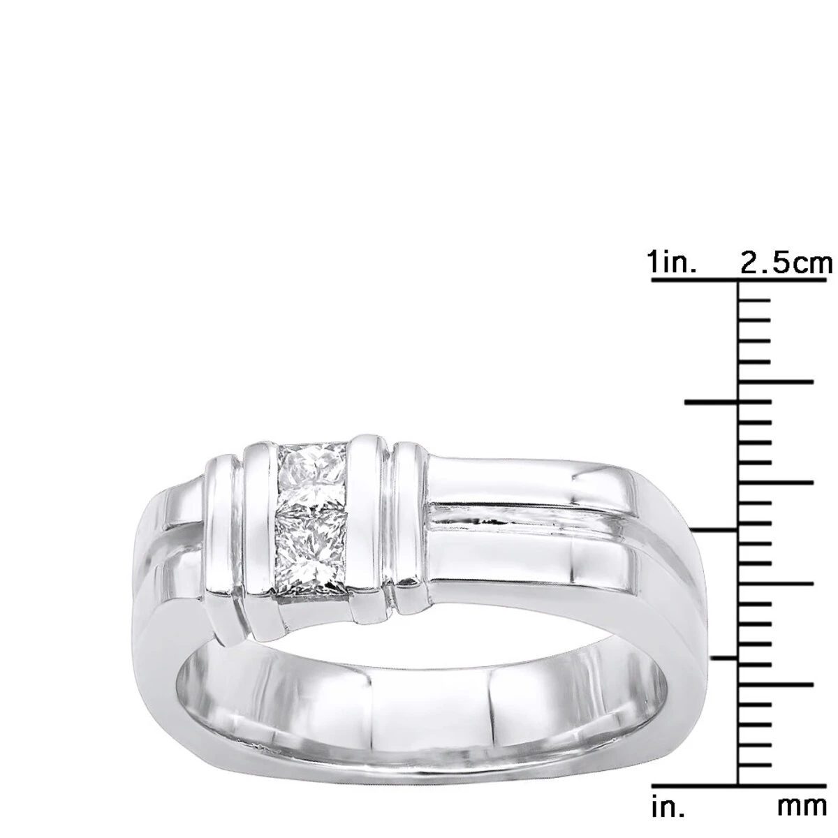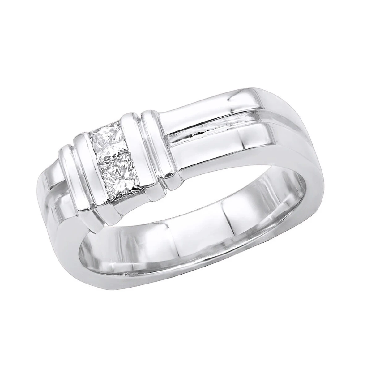 This Diamond Men’s Wedding Ring features 0.60 carats of princess cut diamonds (2 diamonds). This diamond wedding ring is available in Platinum, 18k or 14k yellow, rose, white gold, various sizes, and can be customized with any color and quality diamonds. Please note: it will take us 3-5 business days to make this ring for you so please plan accordingly. Please contact us at 212-398-3123 if your size or desired option is not listed.