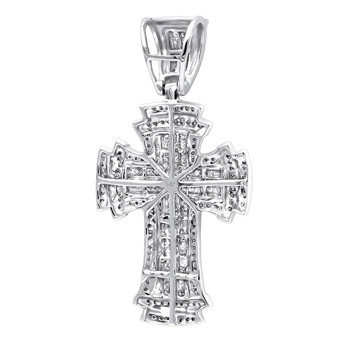 14K White Gold Invisible Set Diamond Cross Pendant 2.19ct