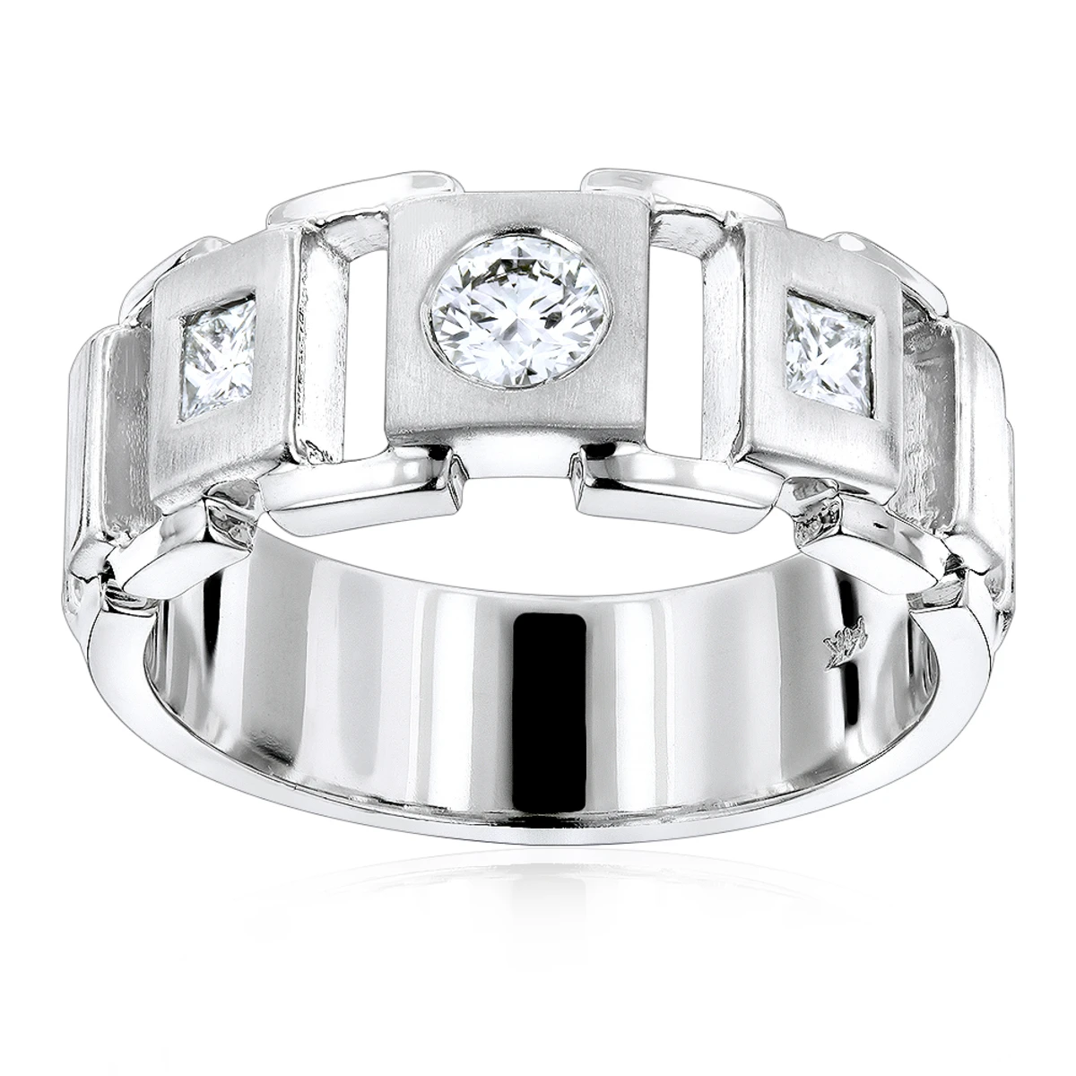 14K White Gold Men’s Princess Cut Diamond Wedding Ring 0.69ct