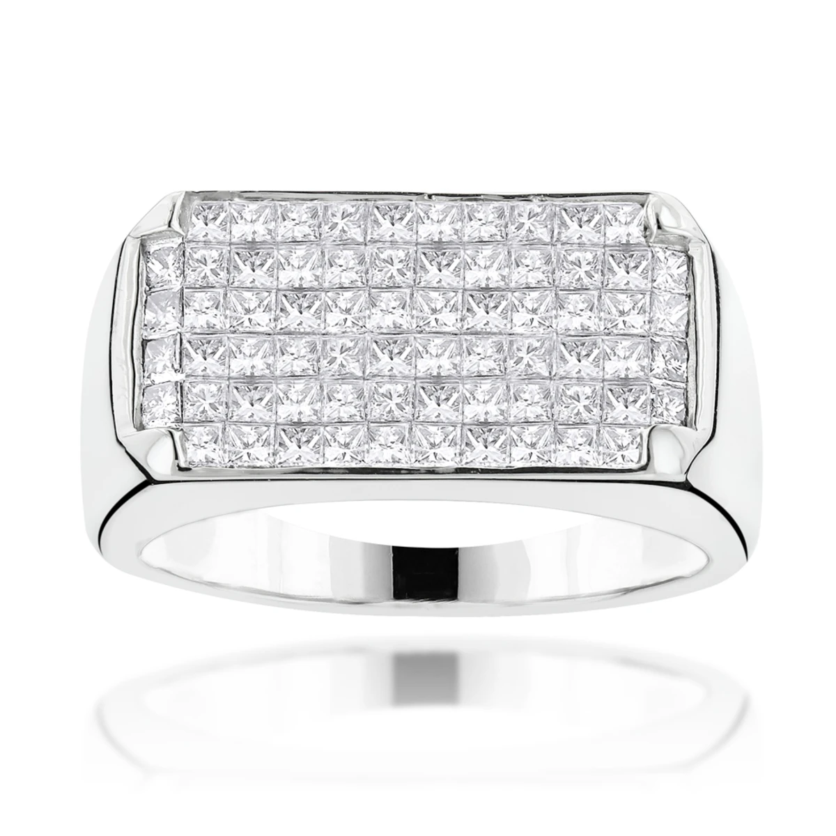 14K White Gold Men’s Princess Cut Invisible Diamond Ring Unique Wedding Band 2ct