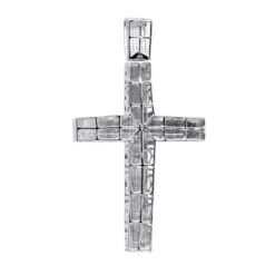 14K White Gold Princess & Round Diamond Cross Pendant 2.28ct