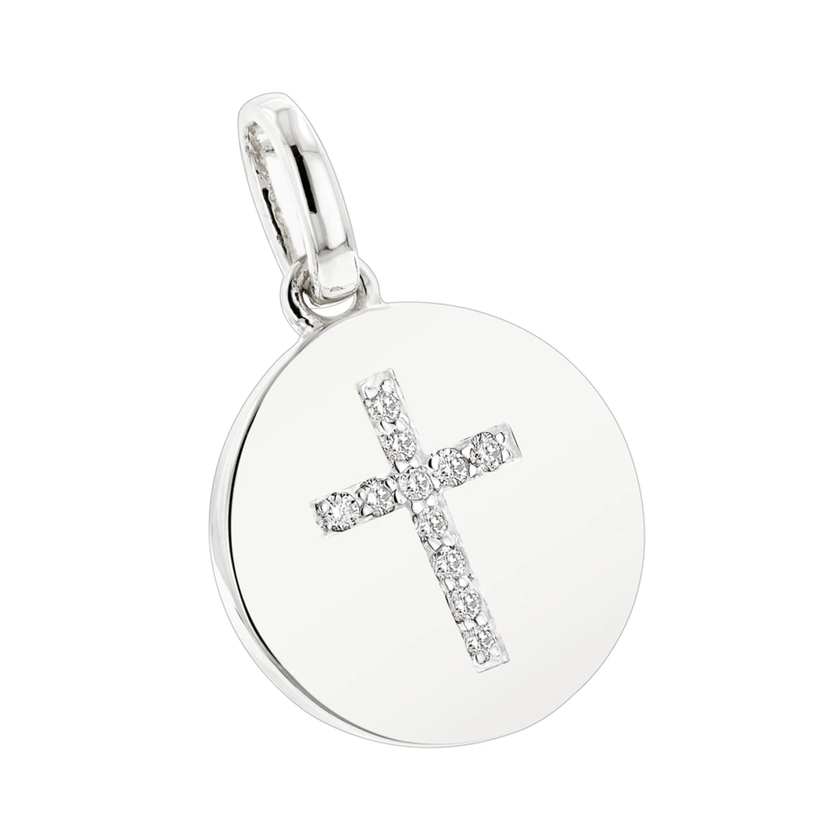 This 14K Gold Cross in a Circle Diamond Pendant features 0.11 carats of round diamonds (11 diamonds). This diamond cross pendant is available in Platinum, 18k or 14k yellow, rose, white gold, various sizes, and can be customized with any color and quality diamonds. Please note: it will take us 3-5 business days to make this pendant for you so please plan accordingly. Please contact us at 212-398-3123 if your size or desired option is not listed. You also can personalize this piece or check we’ve already made and create your own design.