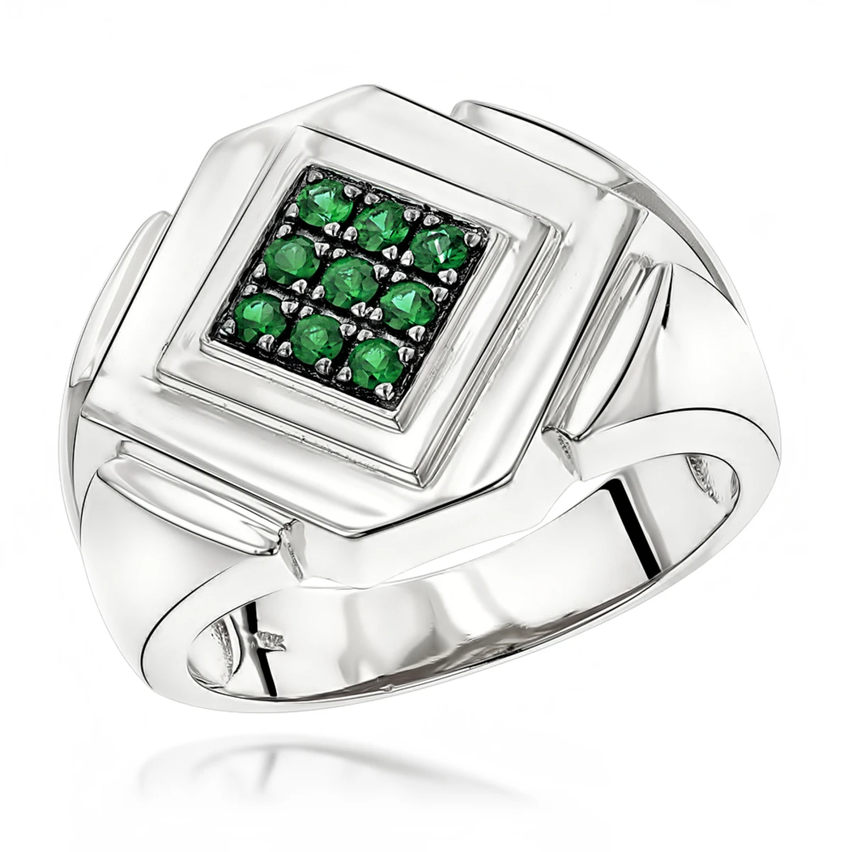 This 14K Gold Emerald Men’s Ring features 0.27 carats of beautiful round cut emeralds (9 stones). This emerald ring for men is available in Platinum, 18k or 14k yellow, rose, white gold, various sizes, and can be customized with any color and quality stones. Please contact us at 212-398-3123 if your size or desired option is not listed.