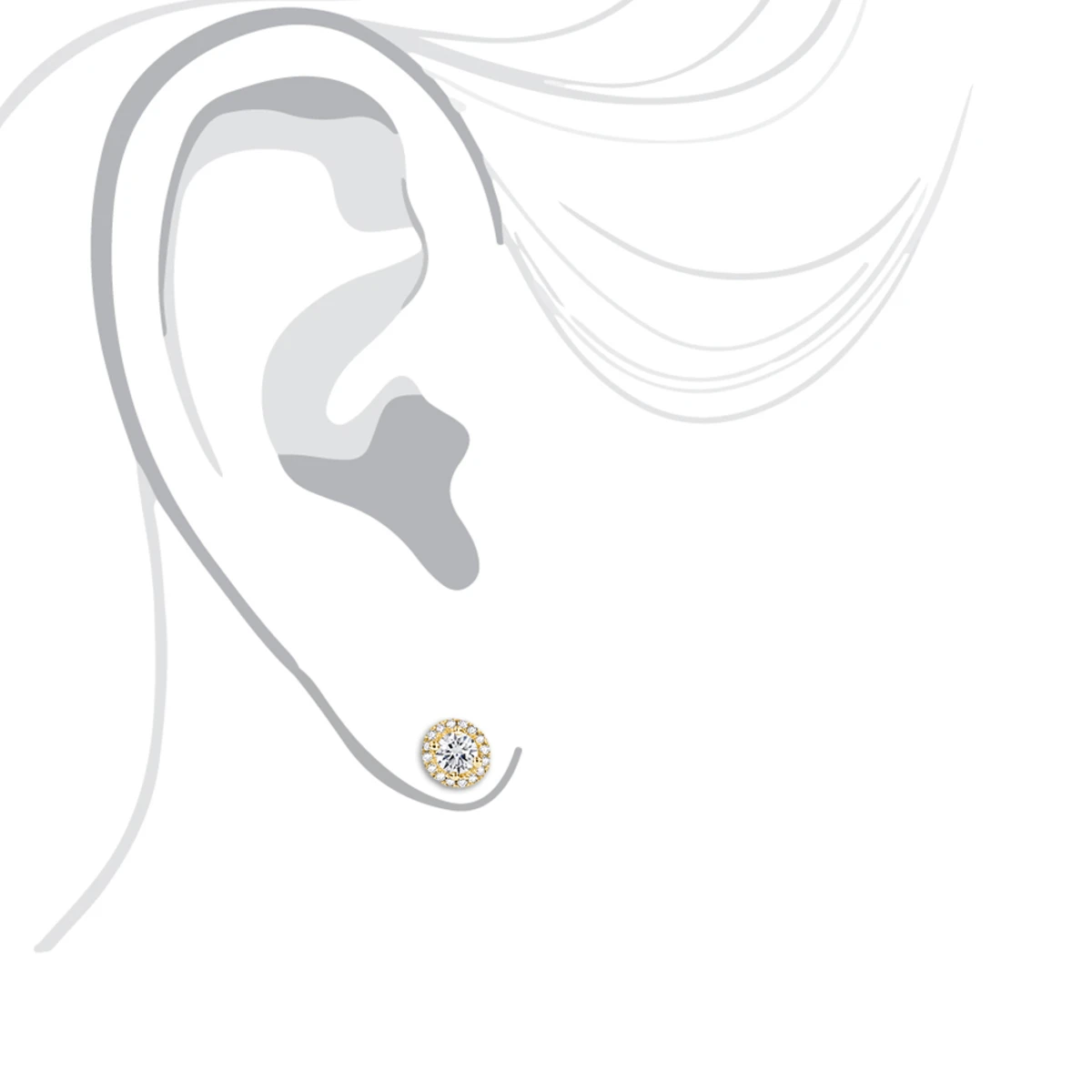 14K Yellow Gold Halo Design 1 Carat Diamond Stud Earrings For Men & Women Sale