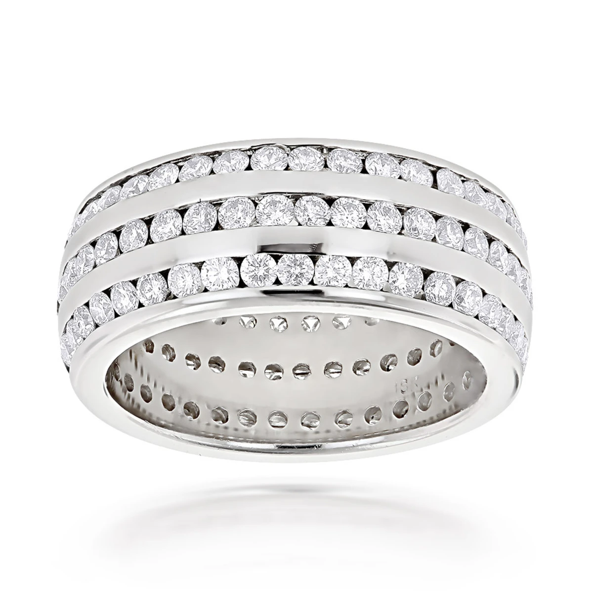 18K White Gold 3-Row Diamond Eternity Band Ring 4.50ct