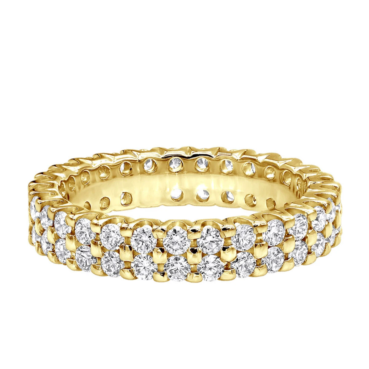 This 18K Gold Diamond Eternity Band features 1.74 carats of round diamonds (58 diamonds). This diamond eternity band is available in Platinum, 18k or 14k yellow, rose, white gold, various sizes, and can be customized with any color and quality diamonds. Price and description is for a ring in 18k gold and up to size 6 but can be made in larger sizes for additional cost. Please note: it will take us 3-5 business days to make this ring for you so please plan accordingly. Please contact us at 212-398-3123 if your size or desired option is not listed.