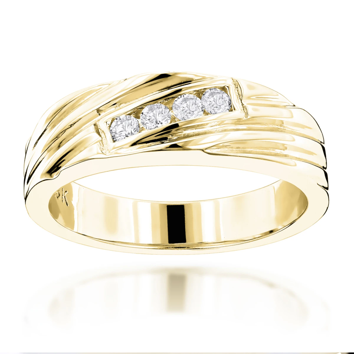 This 18K Gold Men’s Diamond Wedding Ring from Luxurman is the perfect way to symbolize your love and commitment. Crafted from 18K gold, this ring is available in three colors – white, yellow, and rose – to suit your individual style. The ring features a 0.12ct diamond set in a channel setting, with a clarity of VS. The diamond is 5.9mm in size, making it the perfect size to show off your love and commitment.This ring is perfect for the man who wants to make a statement. The 18K gold is strong and durable, and the diamond is of the highest quality. The diamond is set in a channel setting, which ensures that the diamond is secure and won’t move or come loose. The diamond is also of the highest clarity, with a VS rating, so you can be sure that it will sparkle and shine for years to come.This ring is the perfect way to show your love and commitment. Whether you are getting married or just want to show your commitment to your partner, this ring is the perfect way to do it. The 18K gold is strong and durable, and the diamond is of the highest quality, so you can be sure that your ring will last for years to come. With its timeless design and beautiful diamond, this ring is sure to be a treasured symbol of your love and commitment.