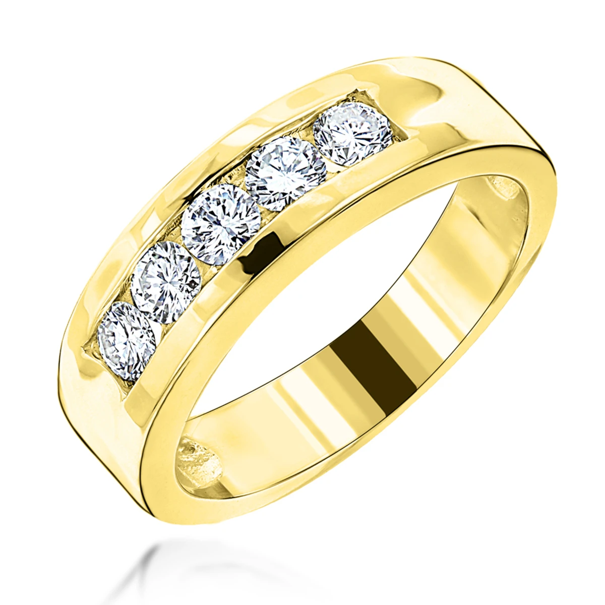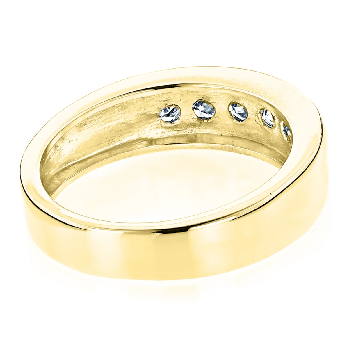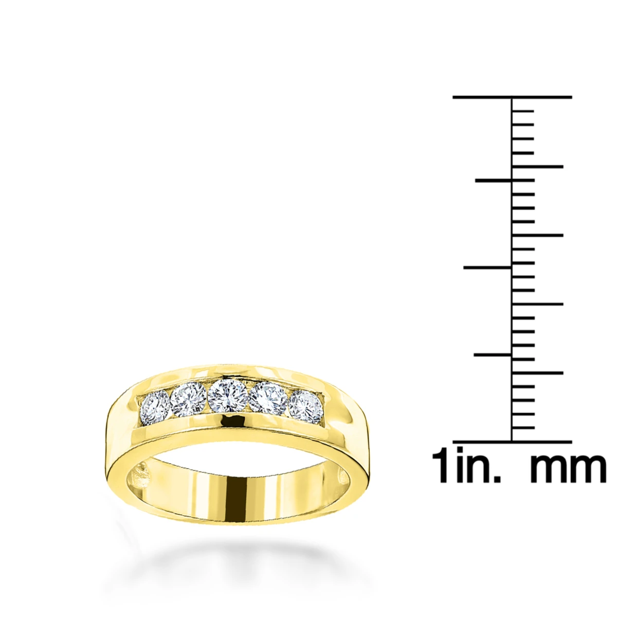 18K Yellow Gold Men’s Diamond Wedding Band 5 Stone Anniversary Ring 0.75ct