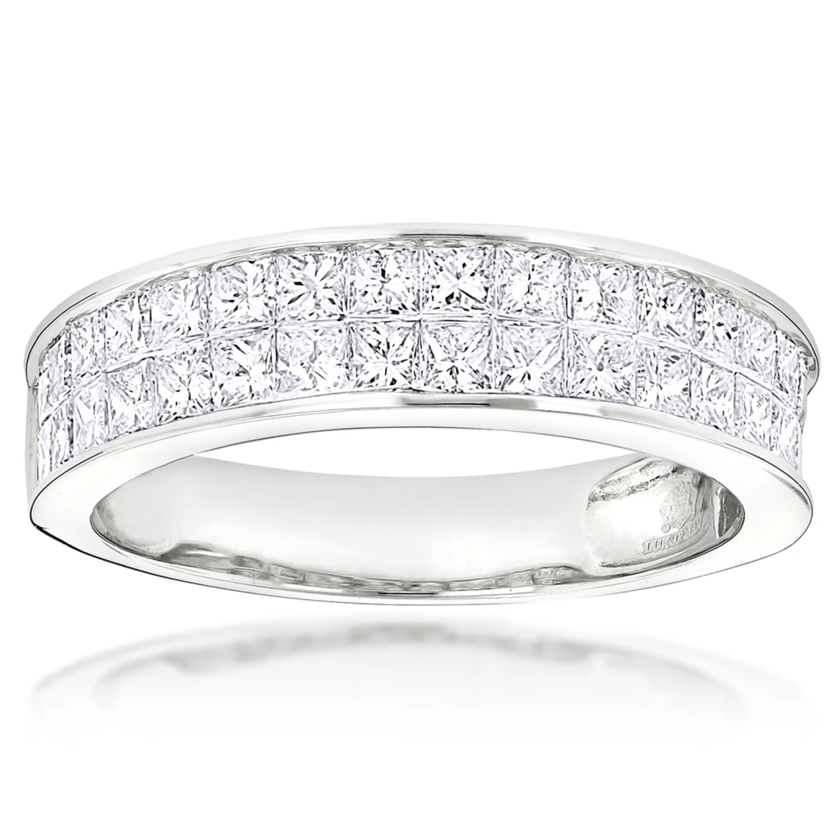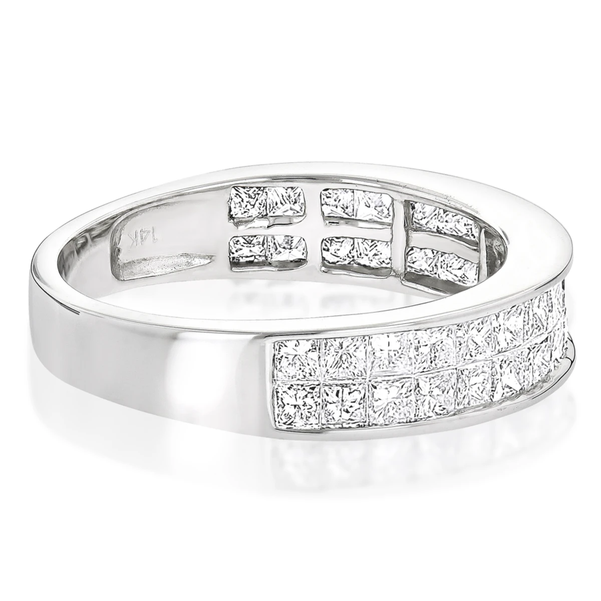 2 Carat Princess Cut Invisible Set Diamond 14K White Gold Wedding Band