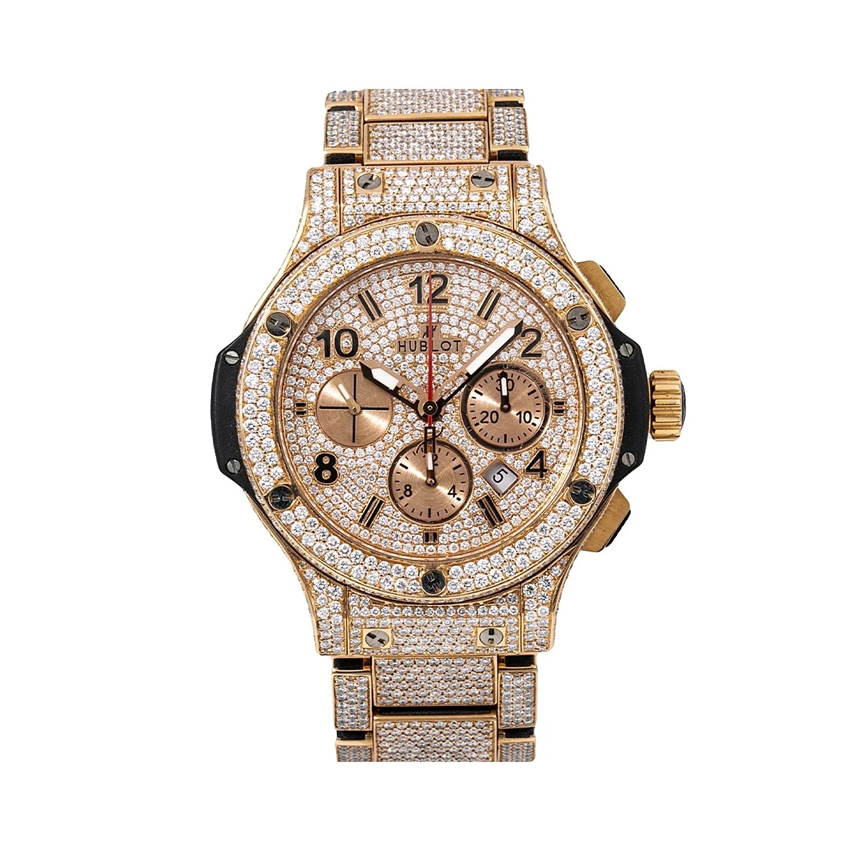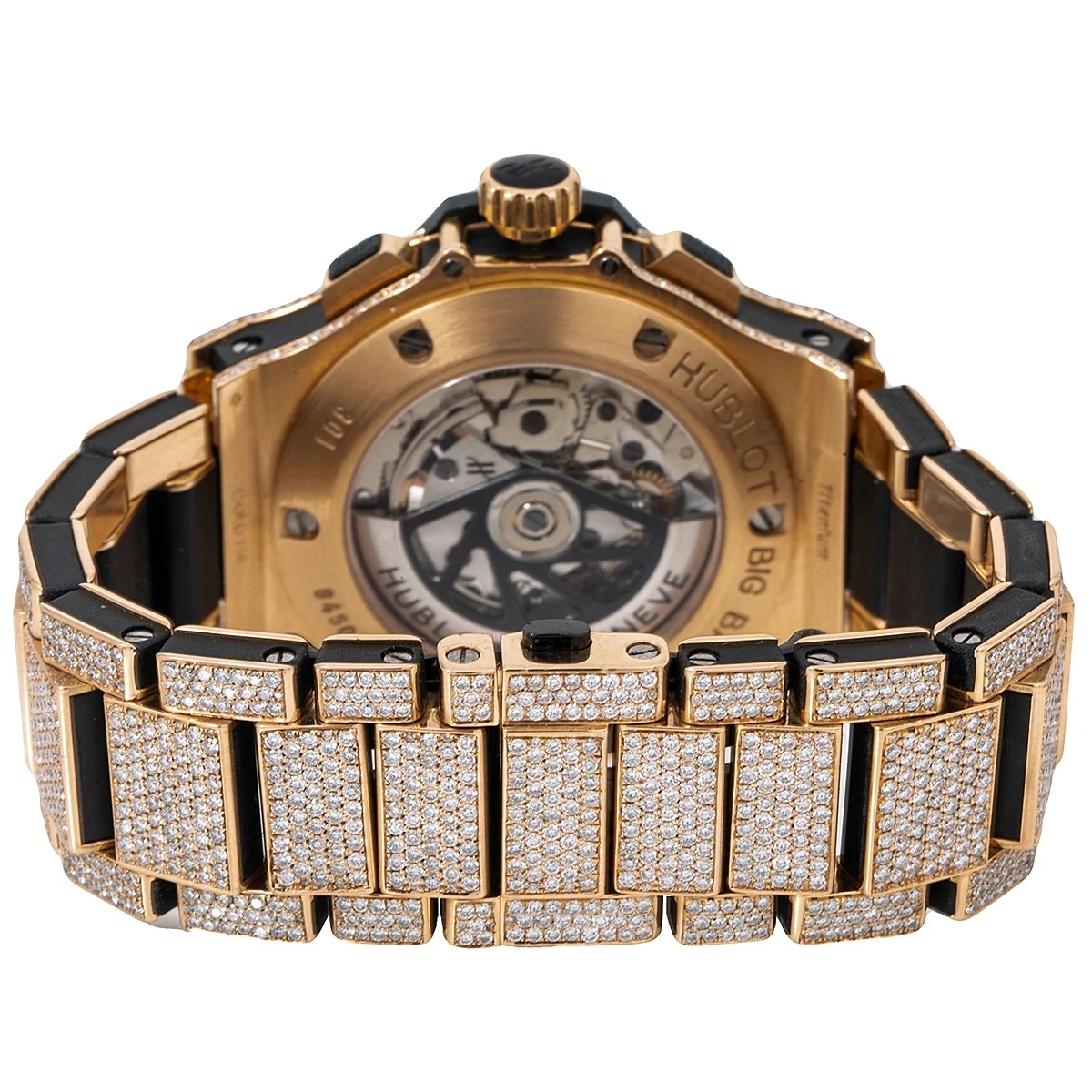 44mm Hublot Men’s Diamond Watch Fully Iced Out Big Bang In Rose Gold 18.09ct