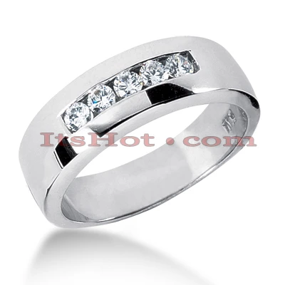 5 Stone 14K White Gold Men’s Diamond Wedding Band 0.4ct