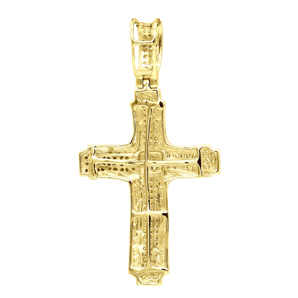 From our religious jewelry collection this sparkling Real 14K gold small diamond cross pendant for men and women showcases 0.33 carats of pave set sparkling round diamonds. Featuring an outlined center, and fully iced out in diamonds design (even the bail is fully pved in genuine diamonds) this stylish diamond cross is suitable both for men and for women and can make a perfect matching gift. The cross is just over an inch and a half long with bail: 1 5/8in. (41mm) and 22mm wide. This shiny unisex diamond cross pendant is available in 14K white gold, yellow gold and rose gold. Please note chain must be purchased separately. You also can personalize this piece or check we’ve already made and create your own design.