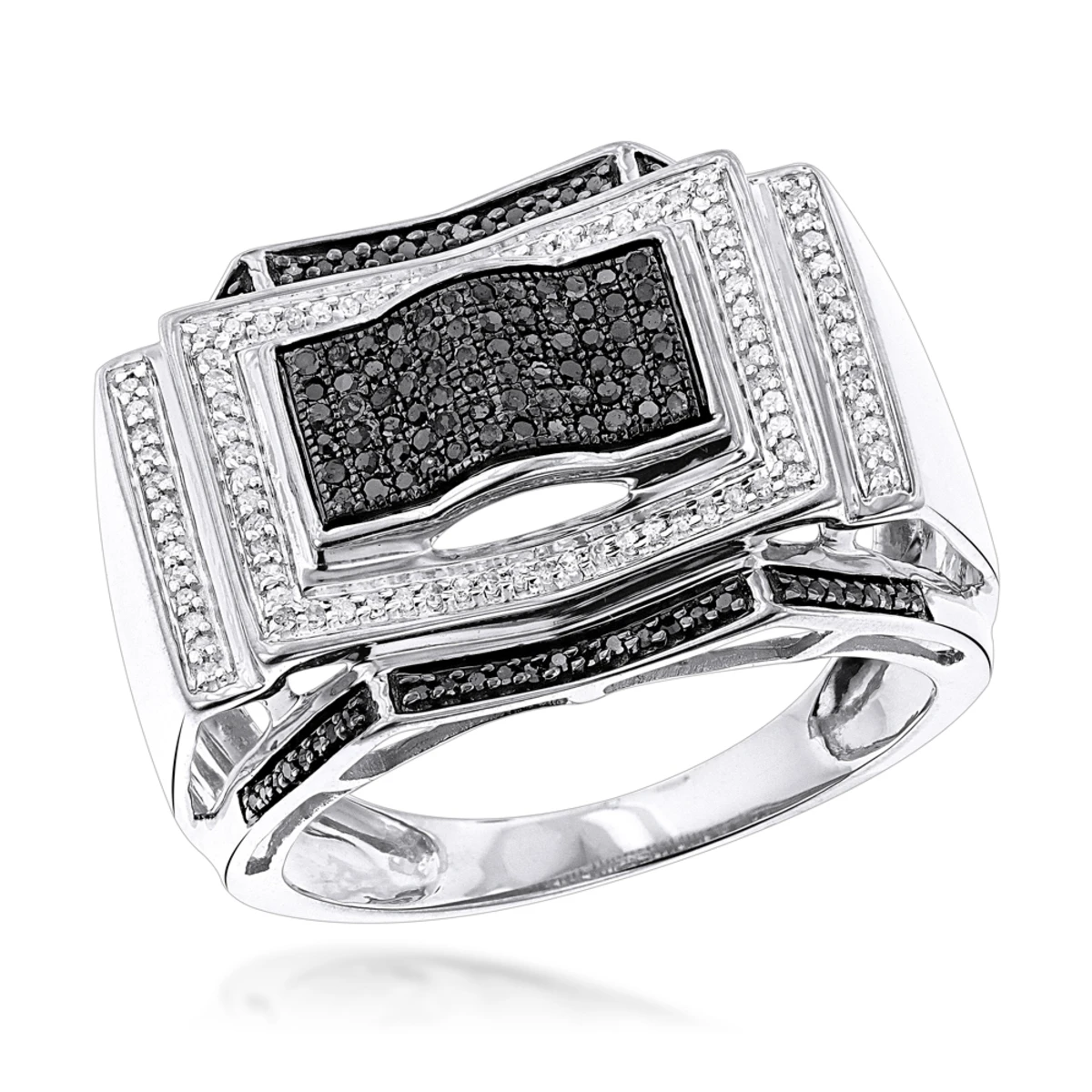 This Black and White Diamond Ring for Men showcases 0.5 carats of pave-set black and white diamonds. This men’s diamond ring features an intricate design and is available in 10K white, yellow and rose gold.