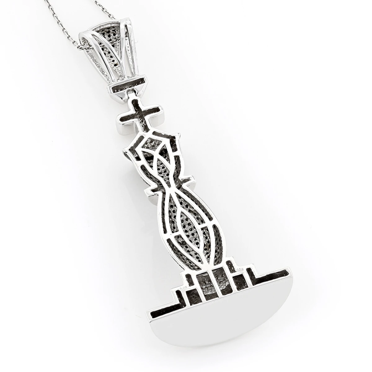 Chess Piece King Black And White Diamond Pendant 1.25ct Silver
