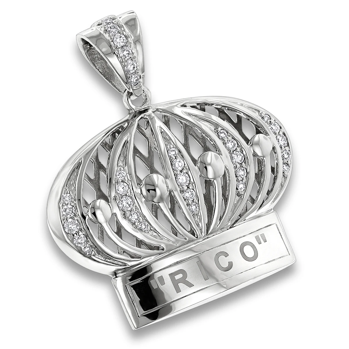Custom Pendants: This Crown Diamond Charm in Sterling Silver showcases 0.9 carats of dazzling round diamonds masterfully set in Sterling Silver base. This engravable men’s diamond pendant will make a great present for a King! This diamond crown pendant can be customized in various metals including 10k, 14k, 18k gold and Platinum, for customization please contact us at 212-398-3123. Please note: it will take us 3-5 days to make this diamond pendant so please plan accordingly. This listing for pendant only, chain must be purchase separately. You also can personalize this piece or check we’ve already made and create your own design.