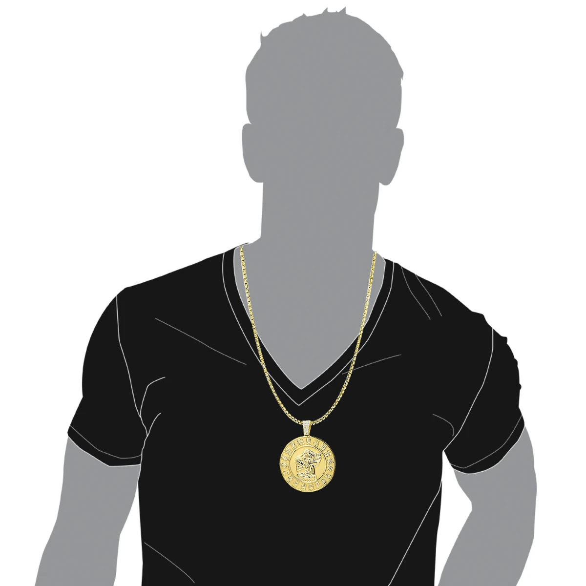 Custom Aztec Sun Stone Calendar Coin Diamond Pendant 18K Yellow Gold For Men