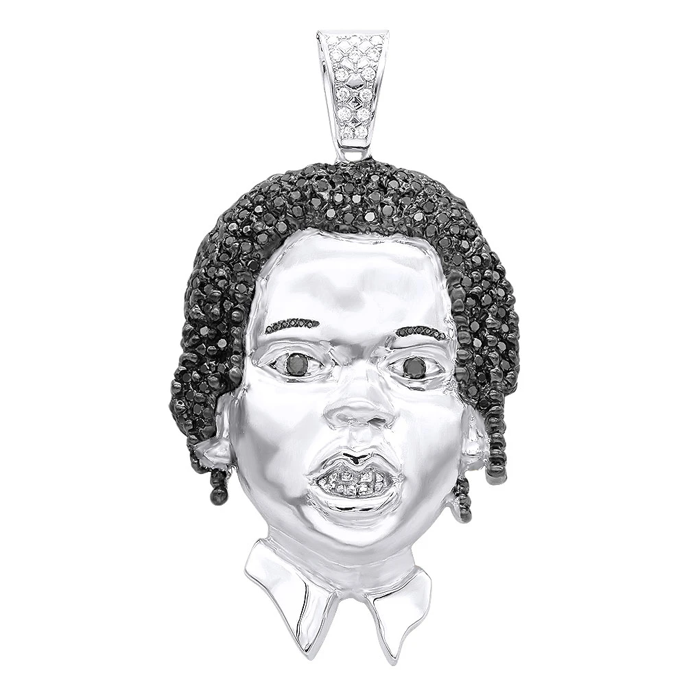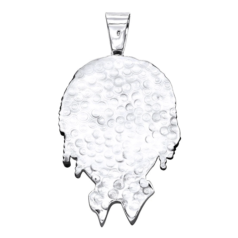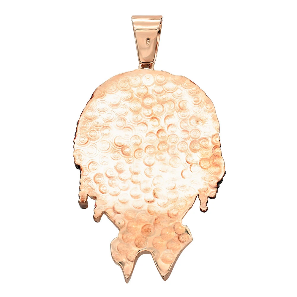 From our custom jewelry collection this custom diamond face pendant for men is made in solid 14k gold and features a face design with black diamonds as hair and white diamonds as teeth totaling 4.65 carats. This custom diamond pendant is quite large at 3.5 inches (with bail) and features a solid back, pendant weights approximately 75 grams. Contact our team to get your won custom pendant design done today! You also can personalize this piece or check we’ve already made and create your own design.