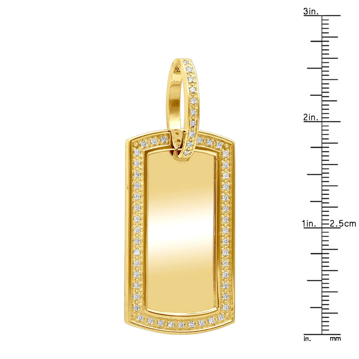 Small 14K Yellow Gold Diamond Dog Tag Pendant Round Diamonds 0.87ct