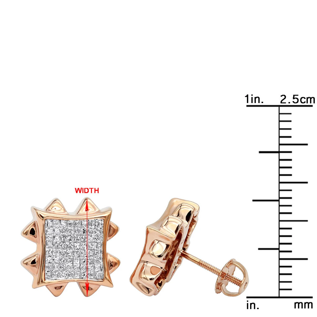 Versatile Diamond Earrings! These fantastic 14K Rose Gold Diamond Stud Earrings from our rose gold jewelry collection weigh approximately 6 grams and showcase 1.66 ctw of invisibly-set princess cut diamonds. Featuring an intricate design and a highly polished gold finish, these diamond stud earrings are available in 14K white, yellow and rose gold.