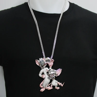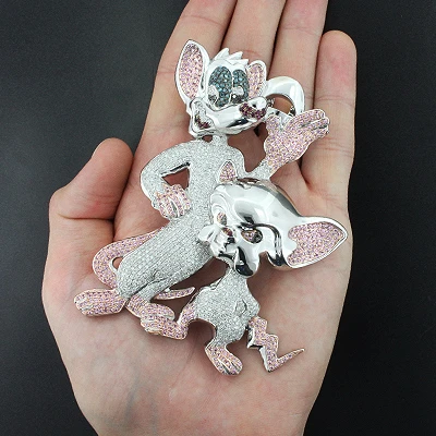 Custom Hip Hop Jewelry: This Diamond Pinky and the Brain Pendant in 14 gold showcases 12.10 carats of dazzling white, blue and black diamonds, pink sapphires and rubies. Featuring an oversized 3-D design and a highly polished gold finish, this custom made diamond pendant is available in 10K or 14K white, yellow and rose gold and can be customized with any color diamonds. To get your own custom jewelry item, please contact us at 212-398-3123. Chain must be purchased separately. You also can personalize this piece or check we’ve already made and create your own design.