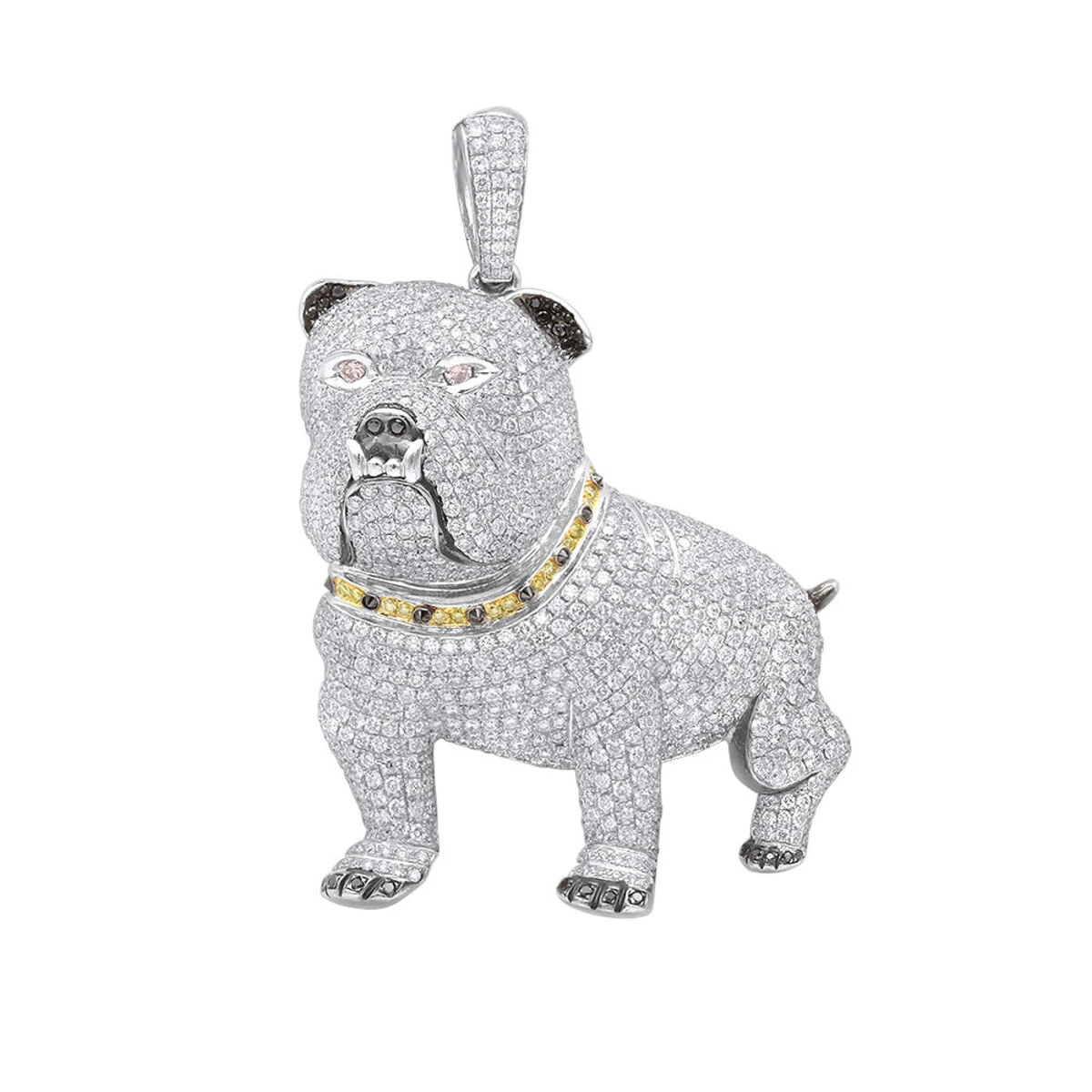 Genuine White Black Yellow Pink Diamond Bulldog Pendant 14K White Gold 17.23ct