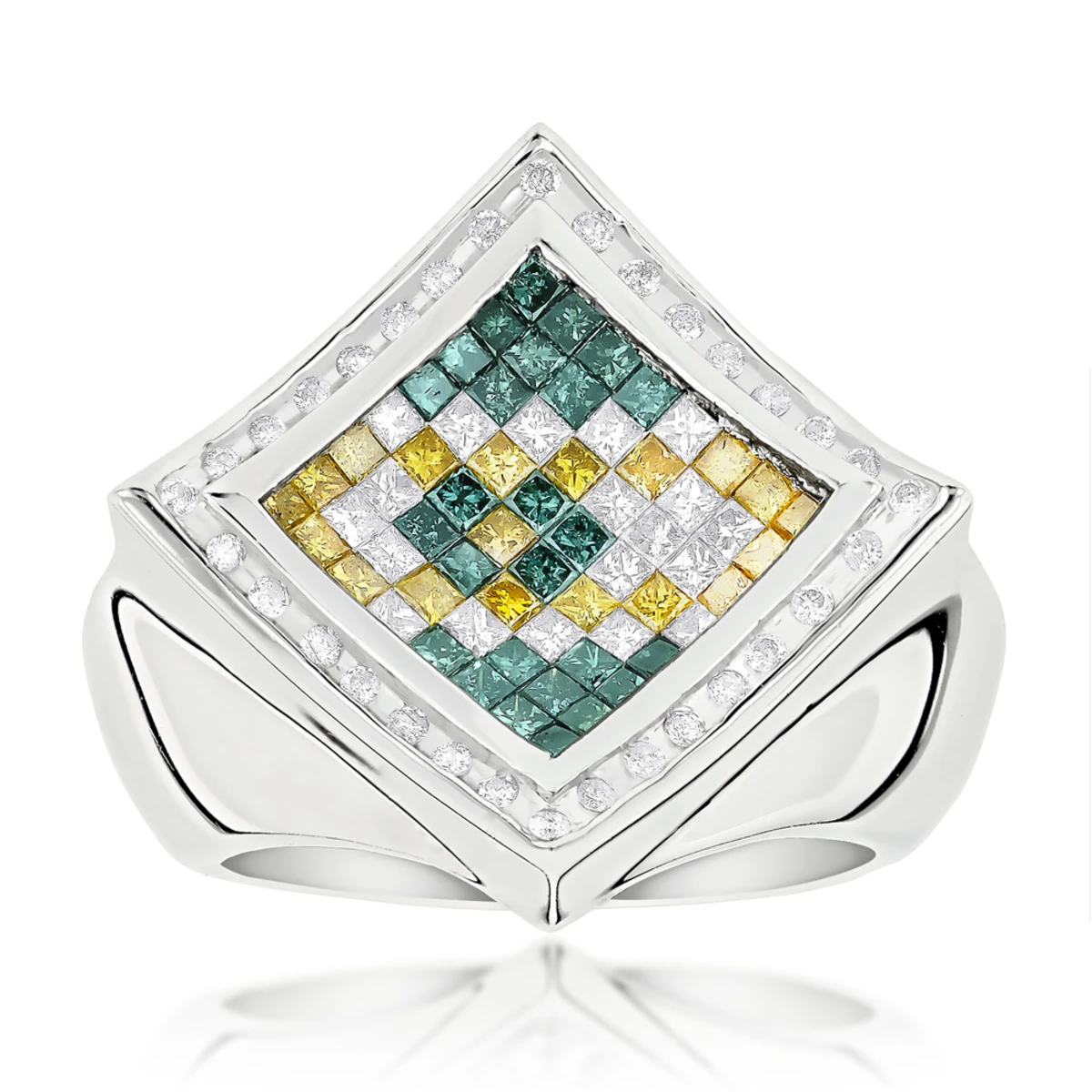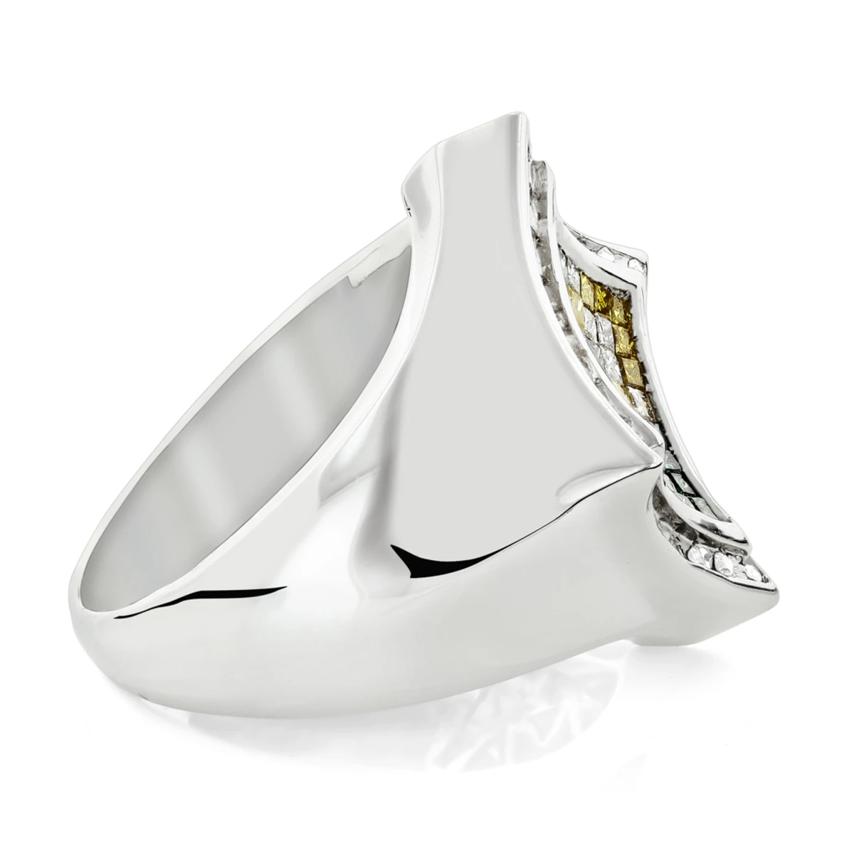 Hip Hop Men’s Color Diamond Ring 14K White Gold 2.50ct