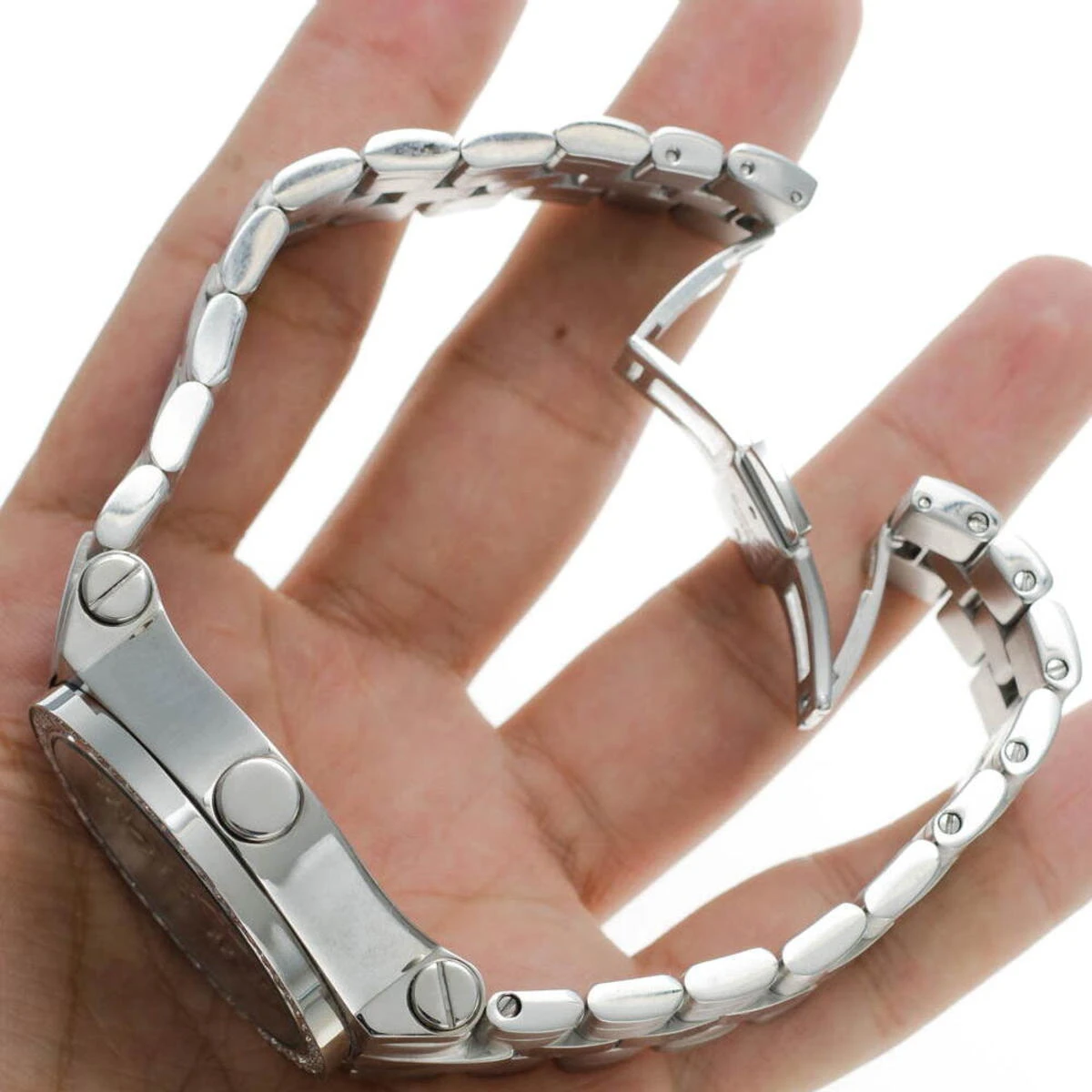 Fine Diamond Watches Collection by Joe Rodeo! This luxurious JoJo Joe Rodeo Phantom watch features 2.25 carats of diamonds, a stainless steel case, scratch-free crystal glass and black stainless steel band. This men’s diamond watch by Joe Rodeo has two rows of white sparkling diamonds around the bezel. The watch also features brushed Silver Stainless Steel dial with three silver tone sub dials, Silver tone hour markers and a row of sparkling white stones around it. Super accurate Swiss-made quartz movement with chronograph function will keep the time for you. Water-resistant 100m (330 ft).