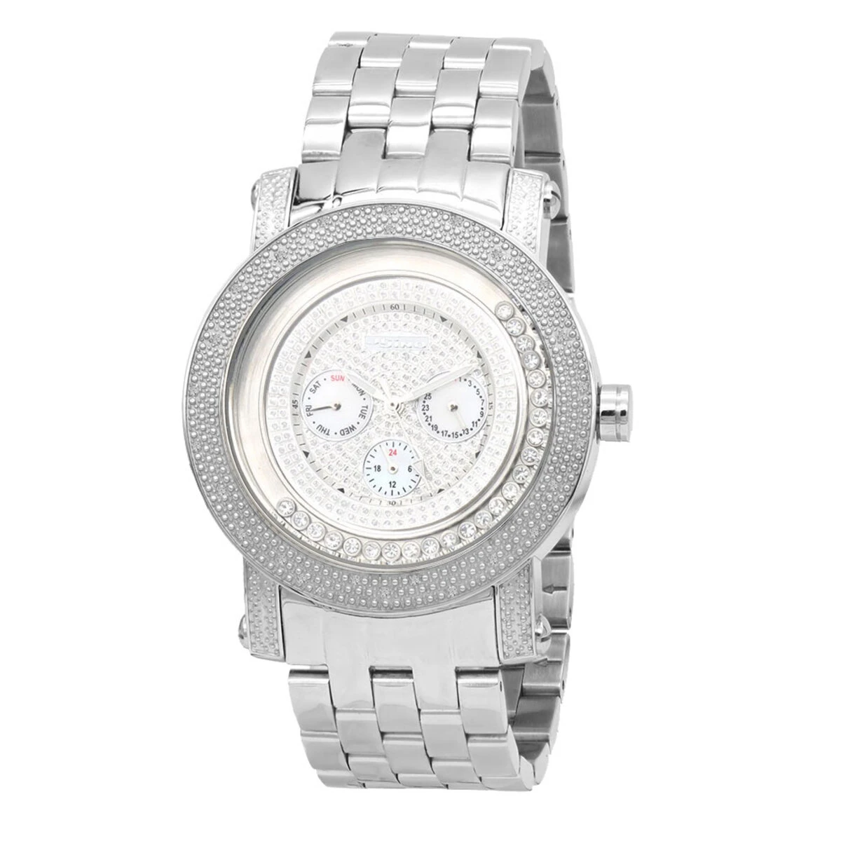 JoJino Men’s Diamond Watch Iced Out White Dial W Subdials & Floating Stones