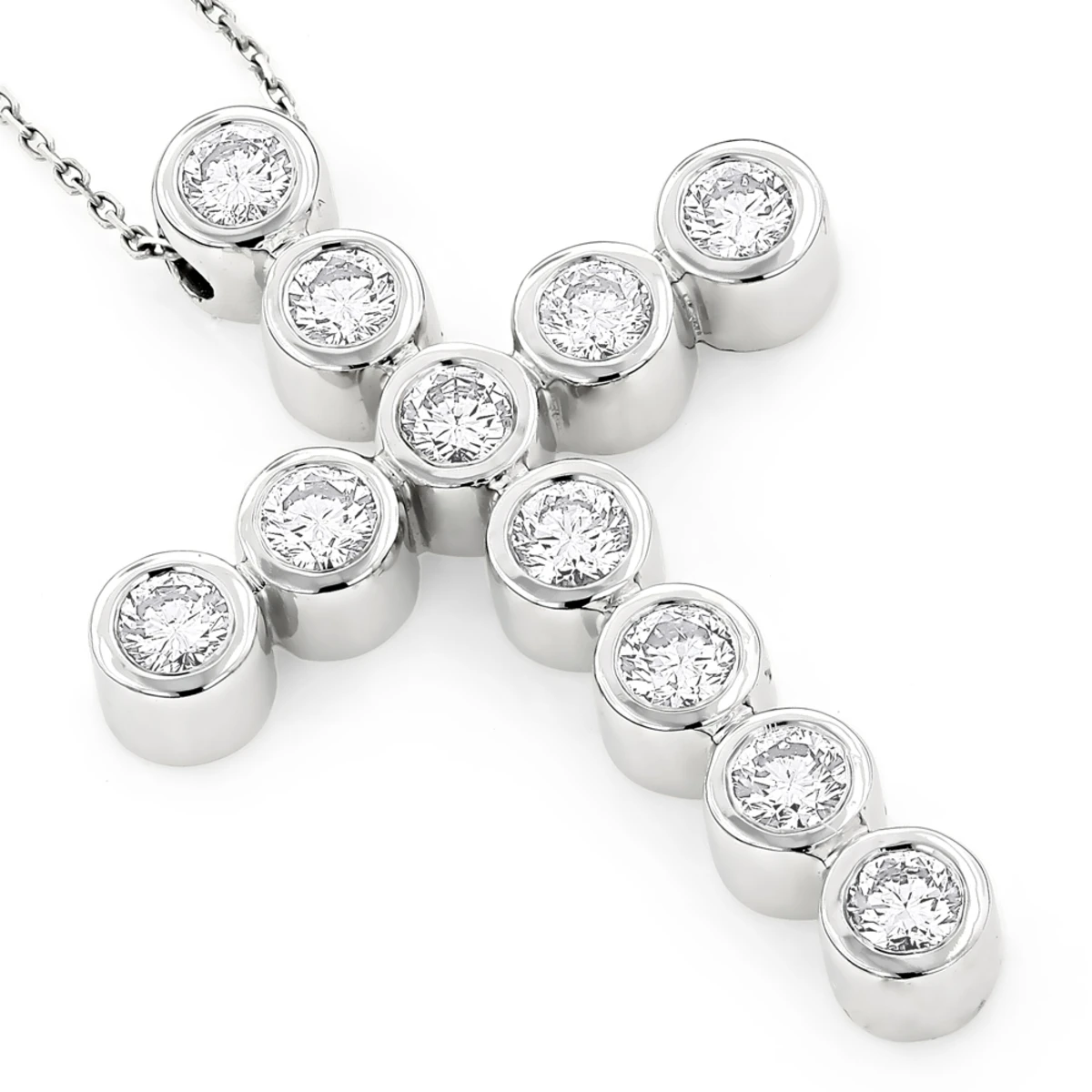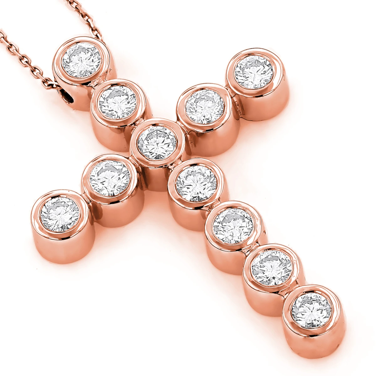 From our men’s diamond crosses collection This Round Diamond Cross Pendant features 2.75 carats of round diamonds 11 large round diamonds are set in a bezel setting for a very unique and high end look. This diamond cross pendant is available in 14k yellow, rose, white gold, and can be customized in other metals and with any color and quality diamonds. Please note: it will take us 3-5 business days to make this pendant for you so please plan accordingly. Please contact us at 212-398-3123 if your size or desired option is not listed. You also can personalize this piece or check we’ve already made and create your own design.