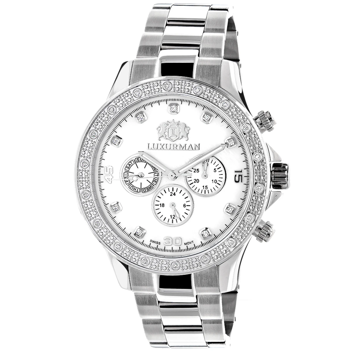 Luxurman Liberty Men’s Diamond Watch 0.2ct White Gold Plated MOP Swiss Mvt
