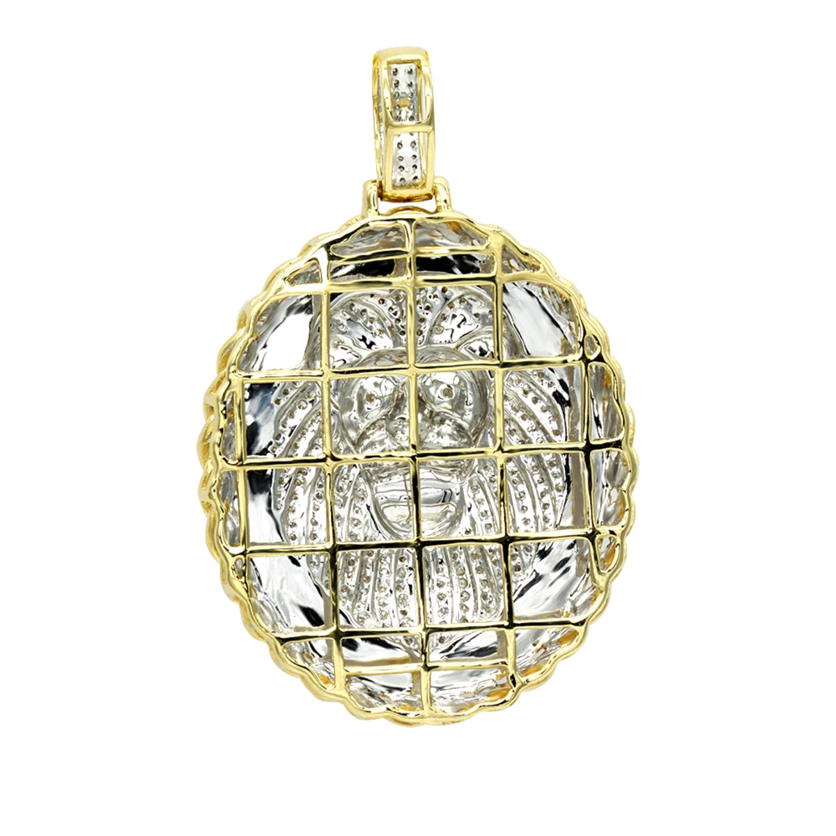 LUXURMAN Medallion 14K Yellow Gold Real Diamond Lions Head Pendant 1ct