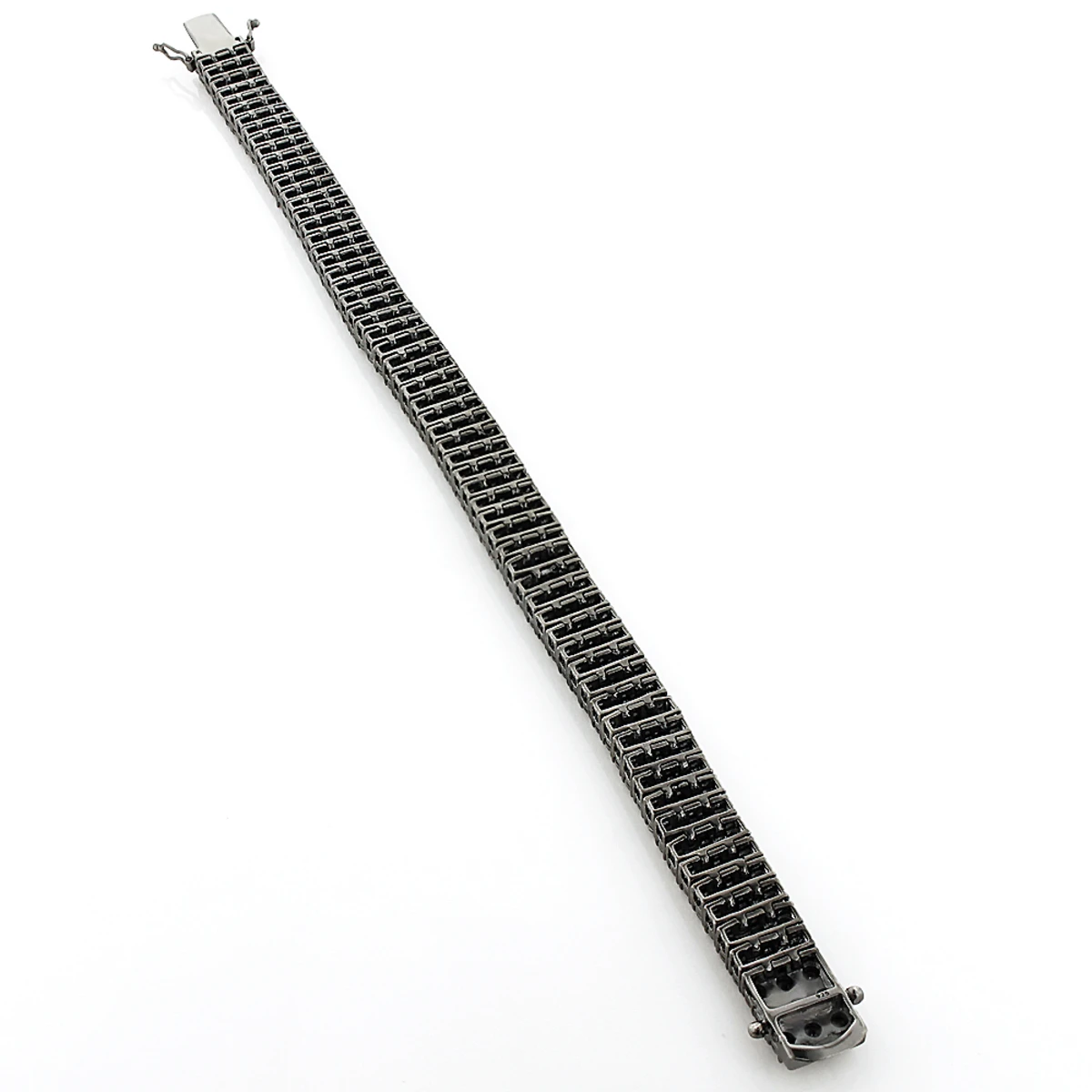 This beautiful Men’s 3 Row Black Diamond Bracelet in sterling silver weighs approximately 30 grams and showcases 0.5 carats of round black diamonds. Featuring a trendy design this sterling silver men’s diamond bracelet is an affordable alternative to gold jewelry.
