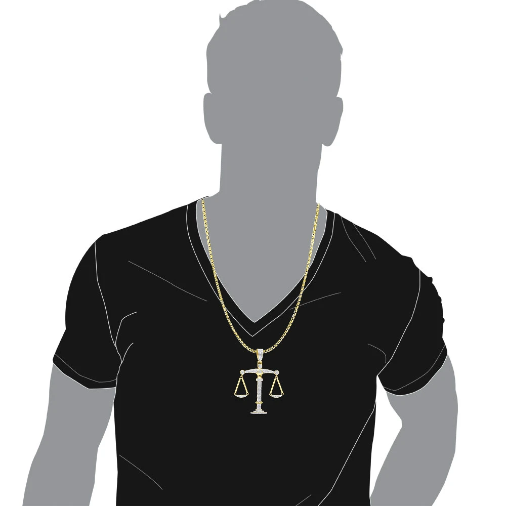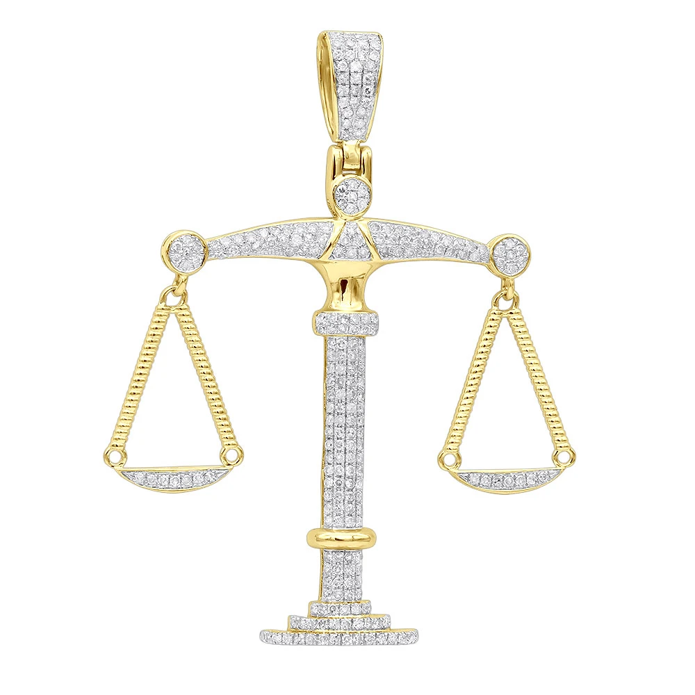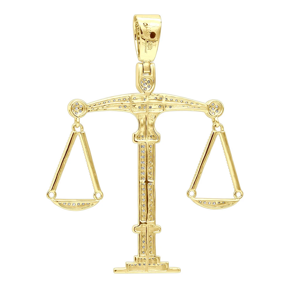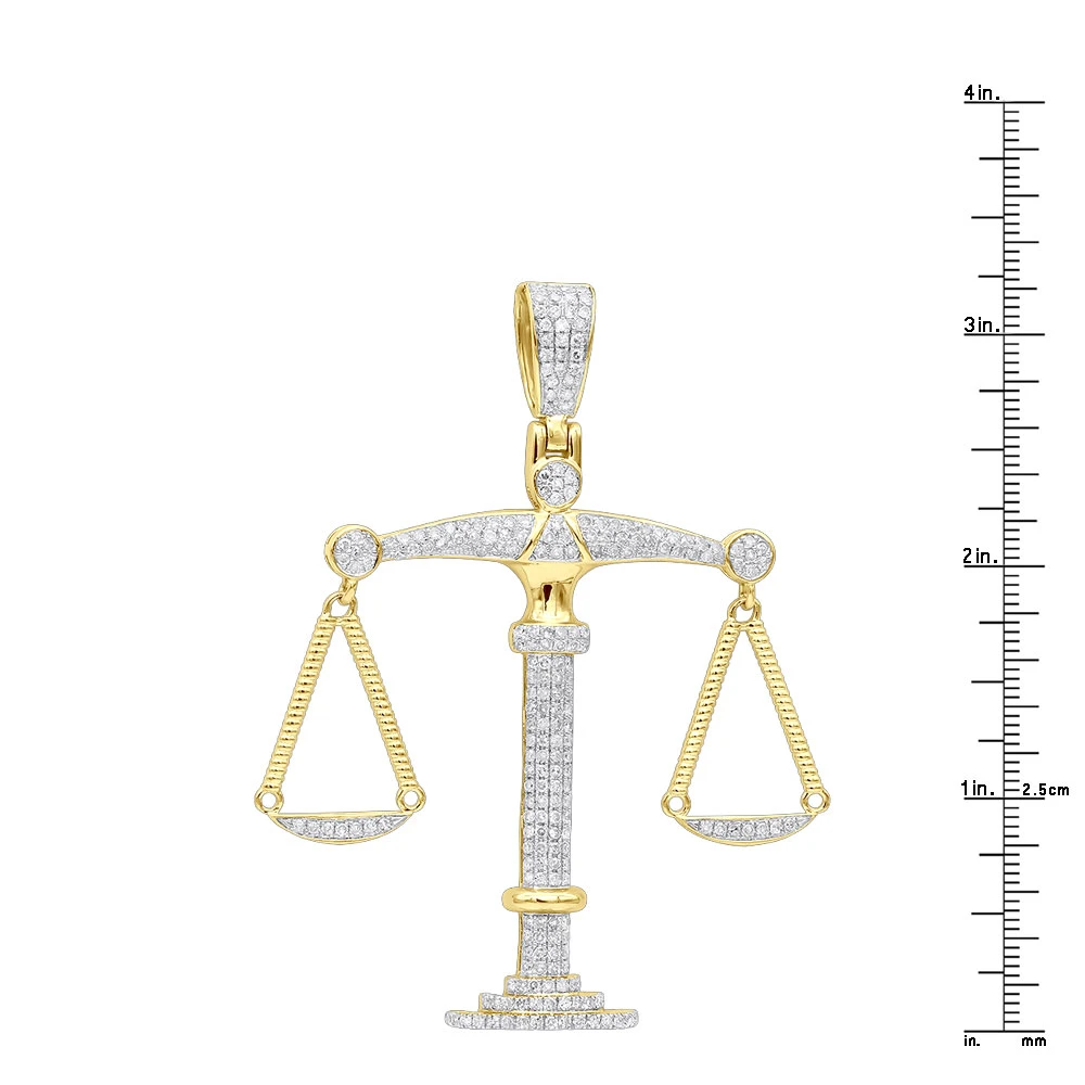 Men’s Diamond Pendant | 3.25in Large 10K Yellow Gold Libra Pendant 3 Carats