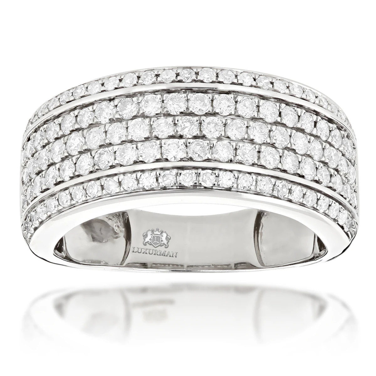 Men’s Diamond Wedding Band Designer Ring By Luxurman 1.5ct 14K White Gold