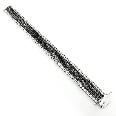 This Men’s Silver Diamond Bracelet weighs approximately 43 grams and showcases 1.20 carats of black and white diamonds. Featuring a trendy two tone design this men’s diamond bracelet is an affordable alternative to gold jewelry.