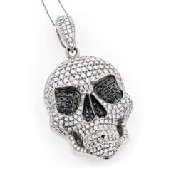 14K Yellow Gold Men’s White Black Diamond Skull Pendant 9.17ct