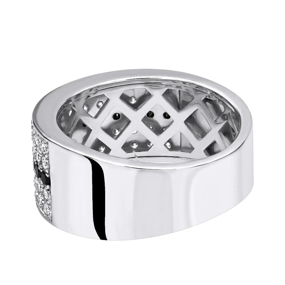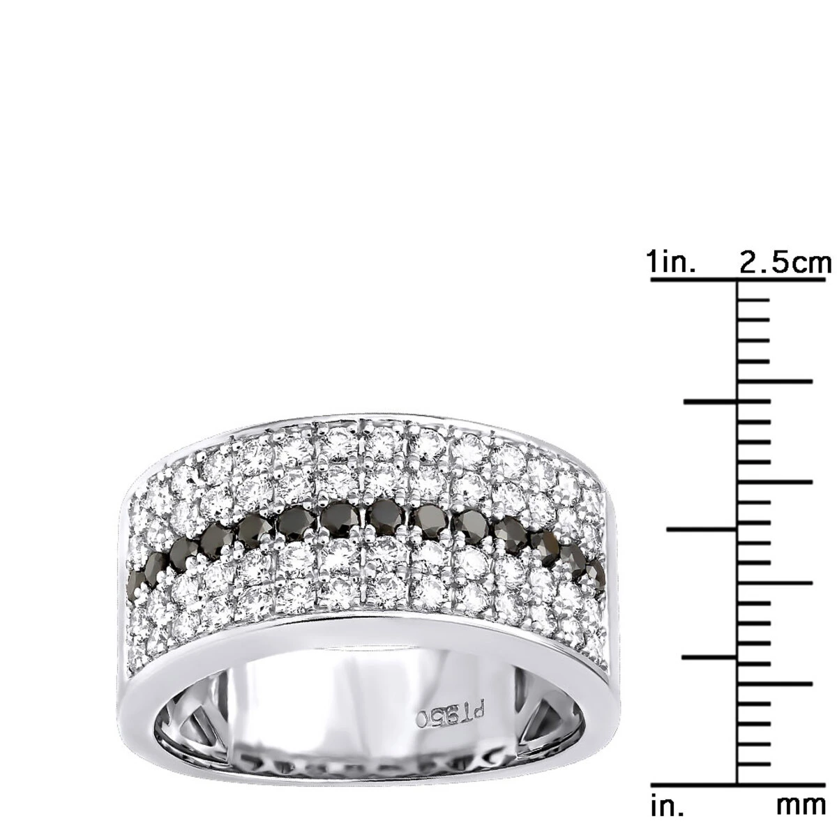 Platinum 5 Row Black And White Diamond Wedding Band For Men & Women 2.25ct