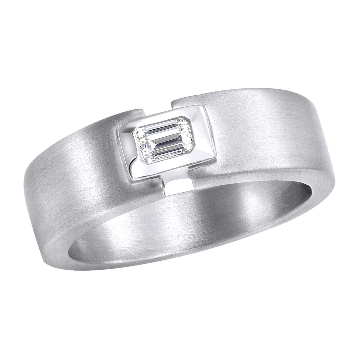 Platinum Emerald Cut Diamond Men’s Wedding Ring 0.25ct