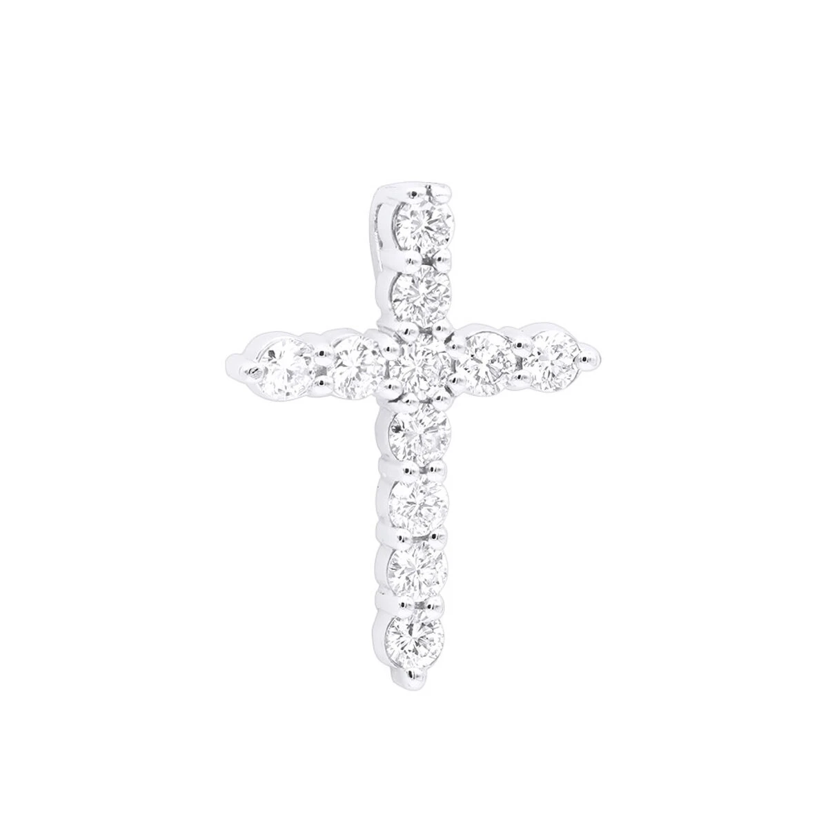 From our diamond pendants collection This real diamond cross necklace in solid 14k gold features a classy design with 11 large, high quality sparkling round diamonds with a total carat weight of 2.5 carats. This diamond cross pendant is a perfect size at 1 3/16in. (29mm) length and has a hidden bail on the back, the cross is available in 14k white gold, yellow gold and rose gold as well as 18k gold and Platinum as a custom order. We can also custom make this cross for you in any size with any color (black, yellow, blue, pink, etc) and quality diamonds or gemstones (rubies, sapphires, emeralds etc.). Please contact us at 212-398-3123 if you would like to customize this amazing cross. You also can personalize this piece or check we’ve already made and create your own design.