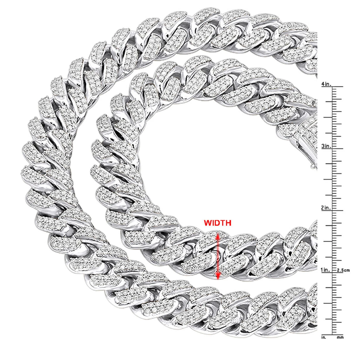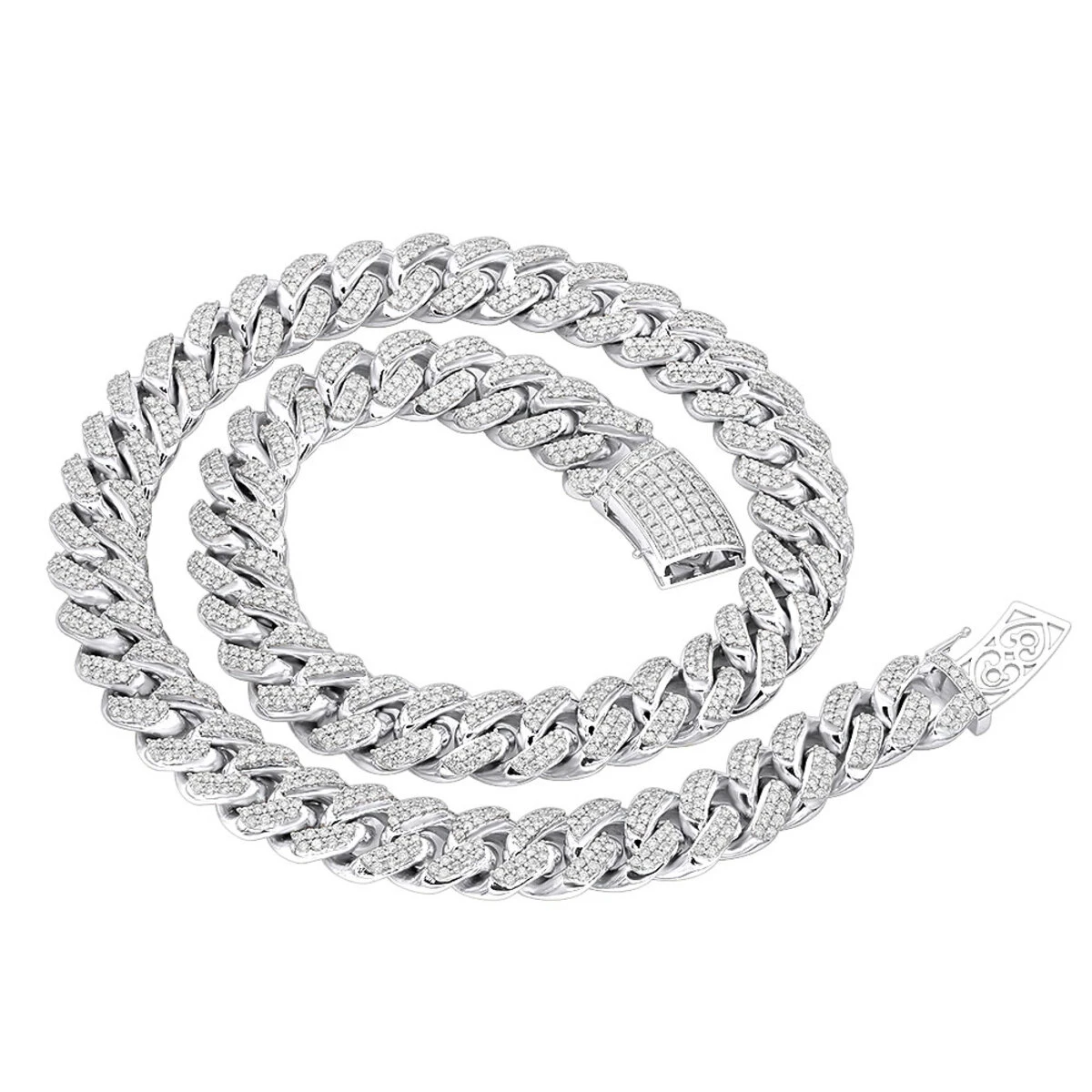 From our real hip hop jewelry collection This stunning fully Iced Out Miami Cuban Link Diamond Chain will catch anyone’s eye! The solid 10k gold Half a kilo Miami Cuban Link Chain weights over 500 grams, the chain is decorated with radiant sparkling round cut diamonds masterfully pave set into the highly polished Cuban links. This fascinating chain is 3/4 inch (19mm) wide and is available in Yellow, White and Rose Gold and also features fully paved in diamonds clasp with two safety pins. This men’s diamond chain is available in different length options to fit your style and desires, the default one pictured is 24 inches. Treat yourself with this amazing, high quality diamond Cuban link chain from our Men’s Diamond Chains collection and be one of the very few who owns this piece of art!