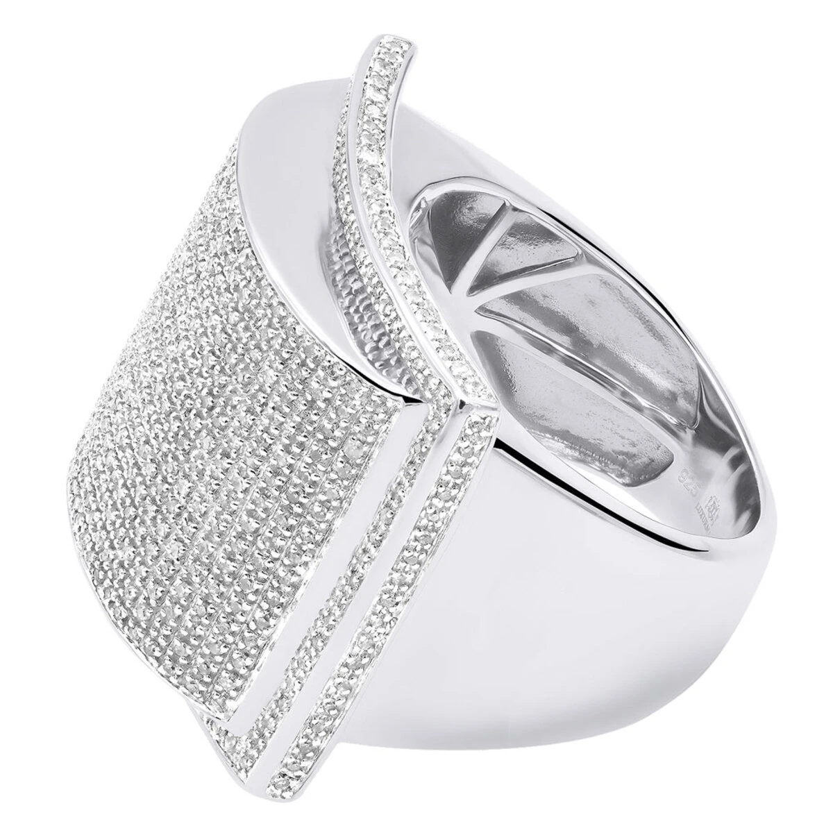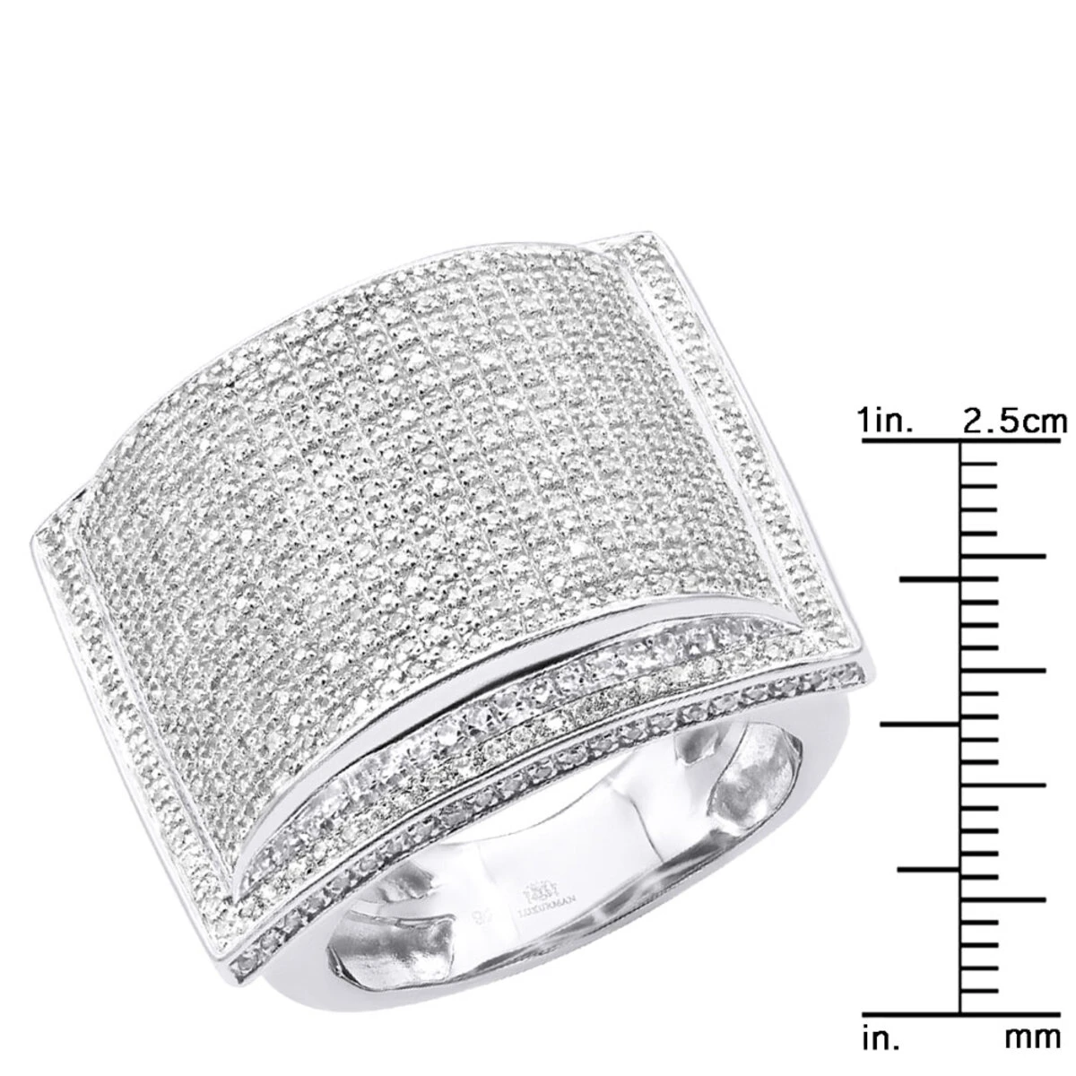 From our men’s diamond rings and Real Hip Hop Jewelry collections: This Sterling Silver Men’s Diamond Ring weighs approximately 15 grams and showcases a full 1carats of genuine diamonds pave set in solid sterling silver frame. Featuring an oversized design and a luxurious rhodium plating for extra shine, this diamond ring for men in sterling silver is a great alternative to gold jewelry, and makes a great gift for a special occasion.