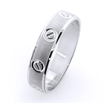 This Small Circles Weddin Band for Men in 14K Gold features a stylish combination of satin and bright polished finishes and delicate circular ornaments. This beautiful wedding band is available in 14K white, yellow and rose gold.