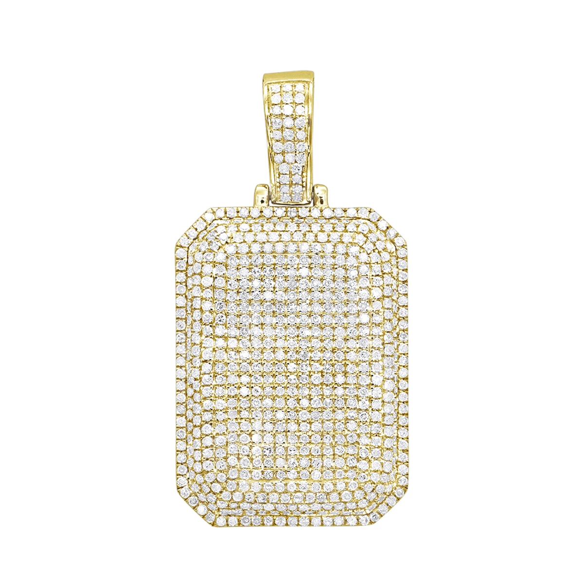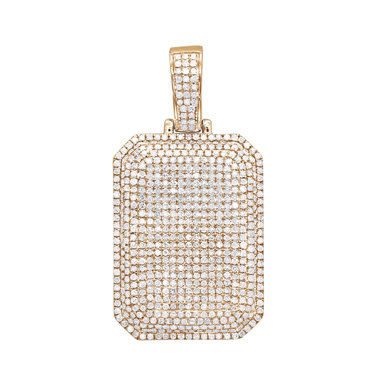 Authentic diamond dog tag pendants by Luxurman! This small diamond dog tag pendant has a unique look with streight cut corners and is fully paved with 1.75 carats of pave set round diamonds for a fully iced out look! This unique diamond dog tag pendant is available in 10k whtie gold, yellow gold and rose gold and makes an amazing gift! You also can personalize this piece or check we’ve already made and create your own design.
