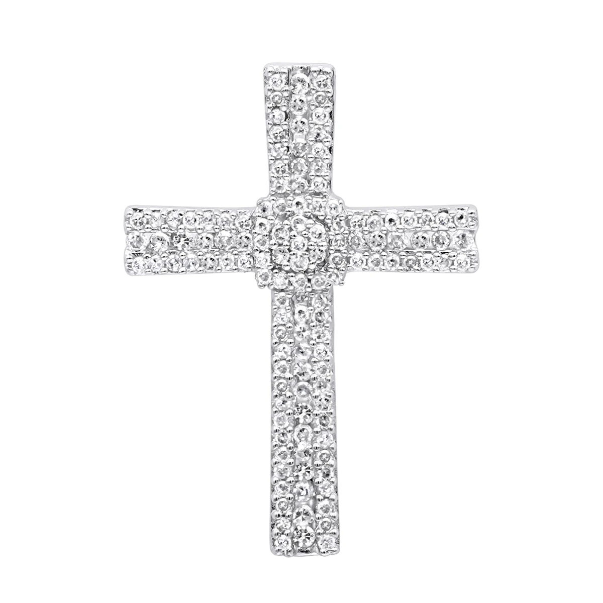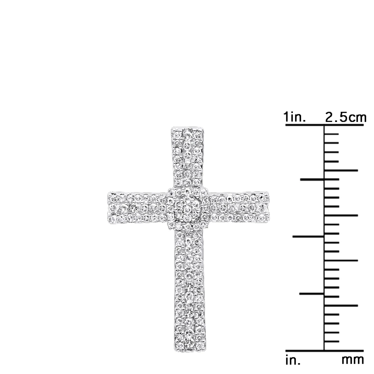 Small Iced Out Diamond Cross Pendant For Women & Men 14K White Gold 0.4ct