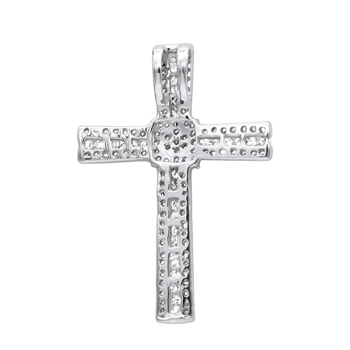 14K White Gold Princess & Round Diamond Cross Pendant 2.28ct