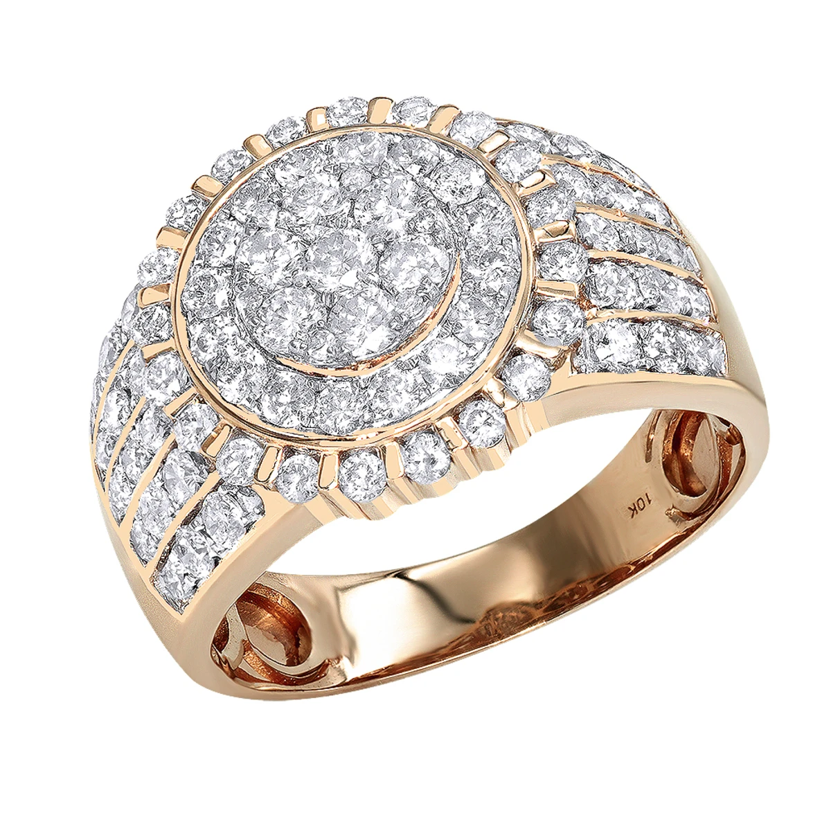 Solid 10K Yellow Gold Diamond Ring For Men By Luxurman 2.5ct